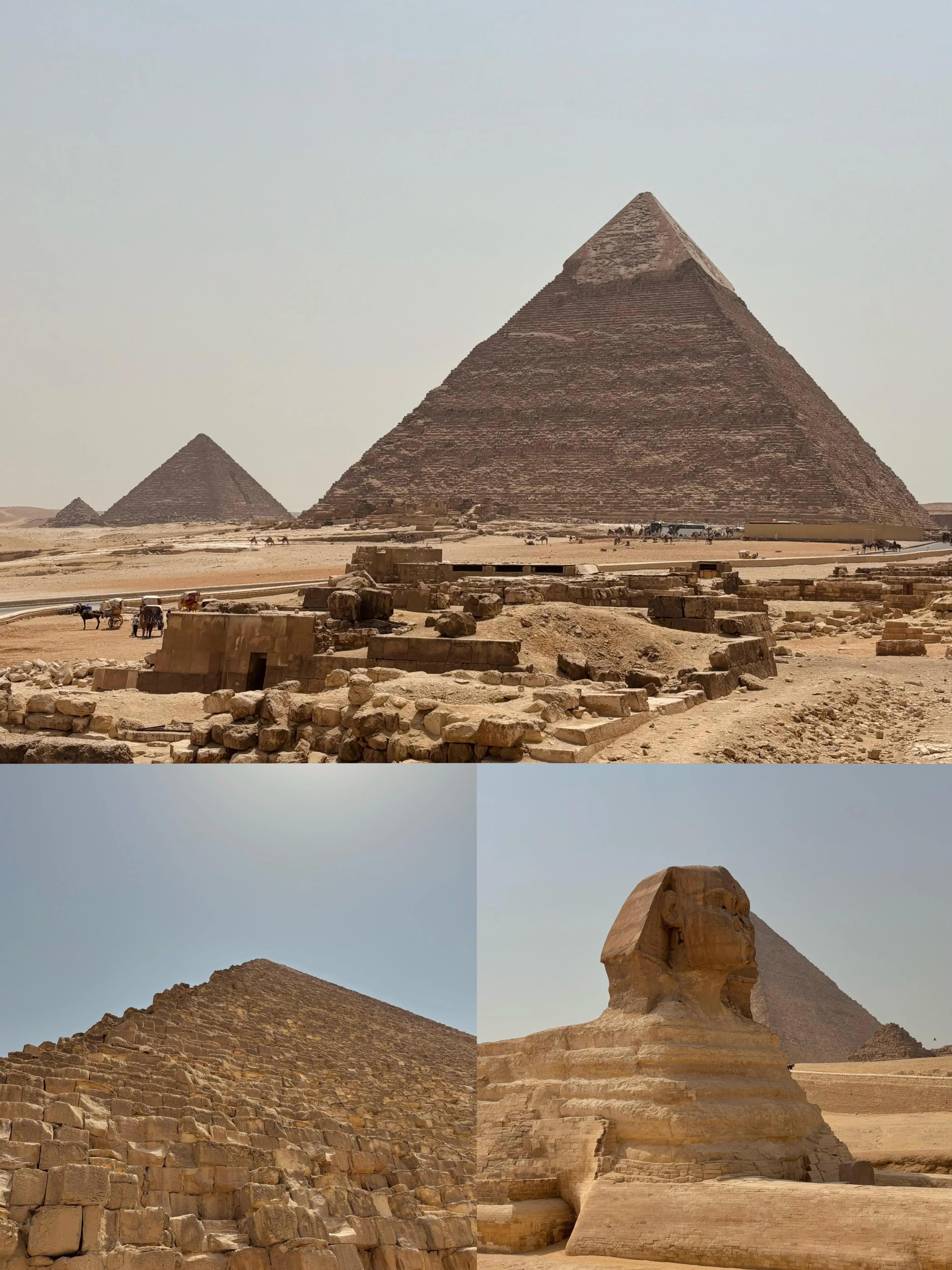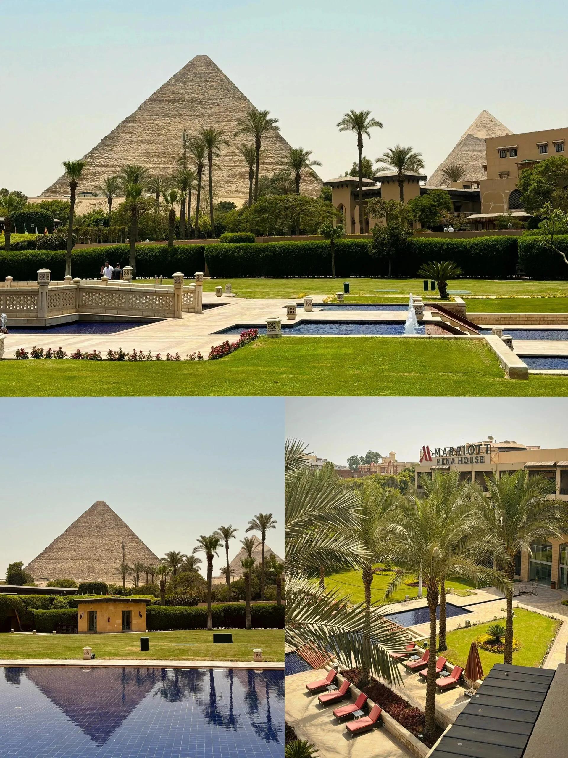 我们入住了金字塔边的米娜宫万豪酒店 ,可以直接看到金字塔。稍作休息后就前往金字塔参观。值得注意的是,路上和景区内都有当地人会搭讪,如果想体验项目记得还价。下午天气炎热,参观体验并不是很舒适。