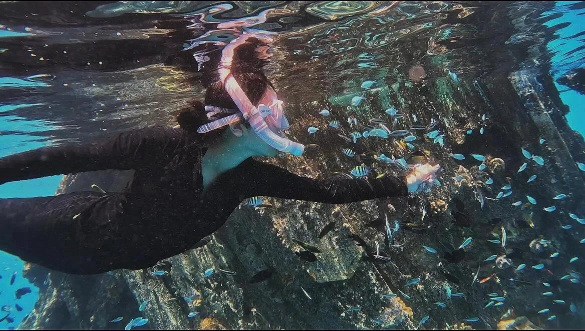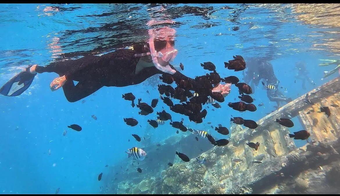 最后是沉船,这里可以自己游,会有工作人员帮你拍照。之前那个工作人员也是一直拿我的GoPro给我拍照拍视频。鱼肉也是他给的(所以会吸引很多小鱼,超级出片)
