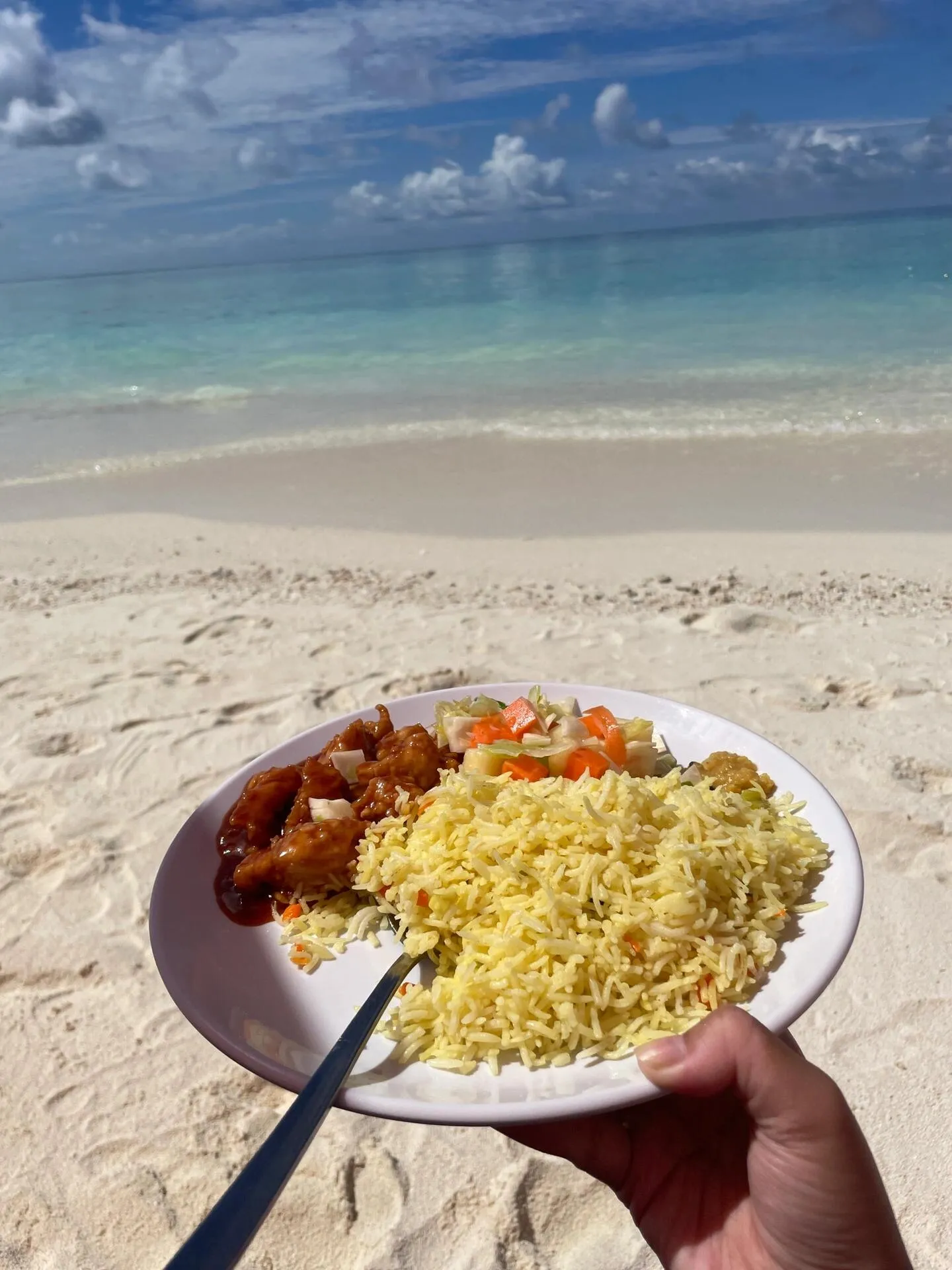 无人沙洲 sandbank 吃午饭,真的蛮热,不过沙滩肯定比马富士的好看,应该和度假岛的差不多(我们先去了甘格西,所以来到这里没什么感觉)。如果后面有订度假岛的姐妹,这个点就不要出去晒了。K家的饭还是挺好的,能吃,还有橙子和果汁。