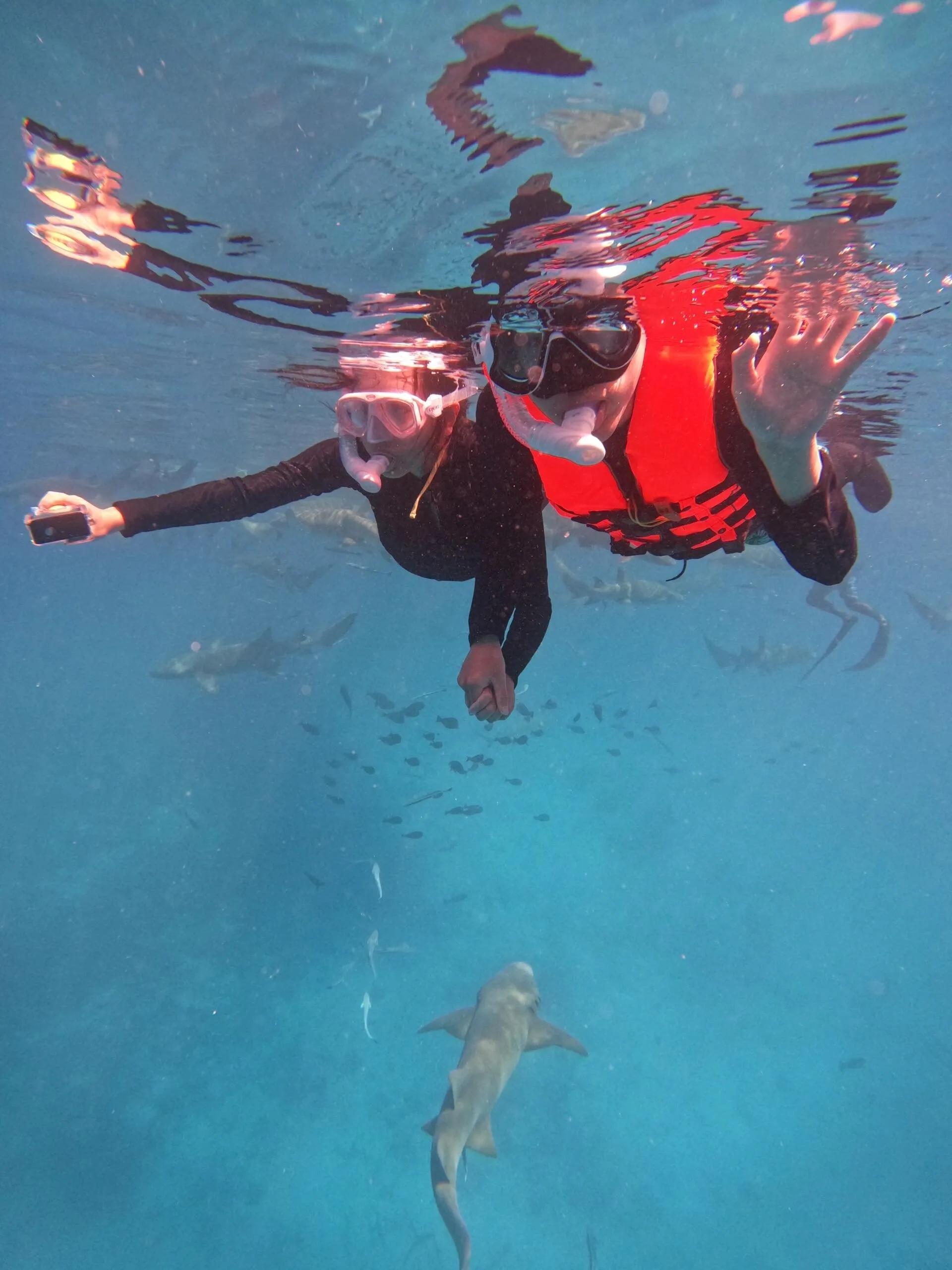 再三确认了K航拍只有在无人沙洲(吃午饭的地方)要额外加15美金。护士鲨和沉船的只有免费水下照片。