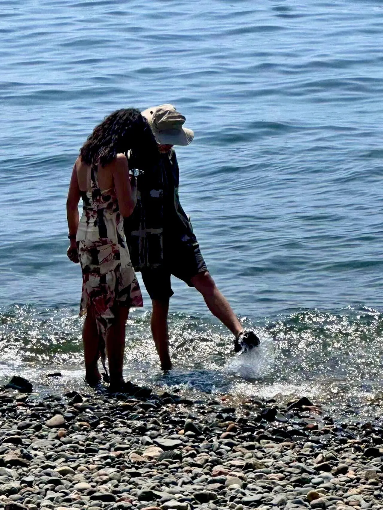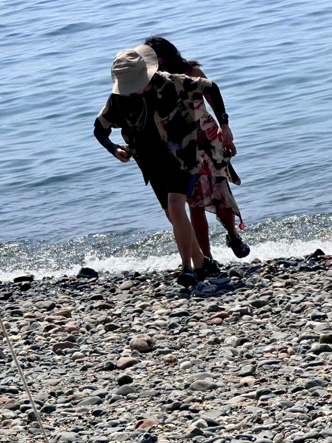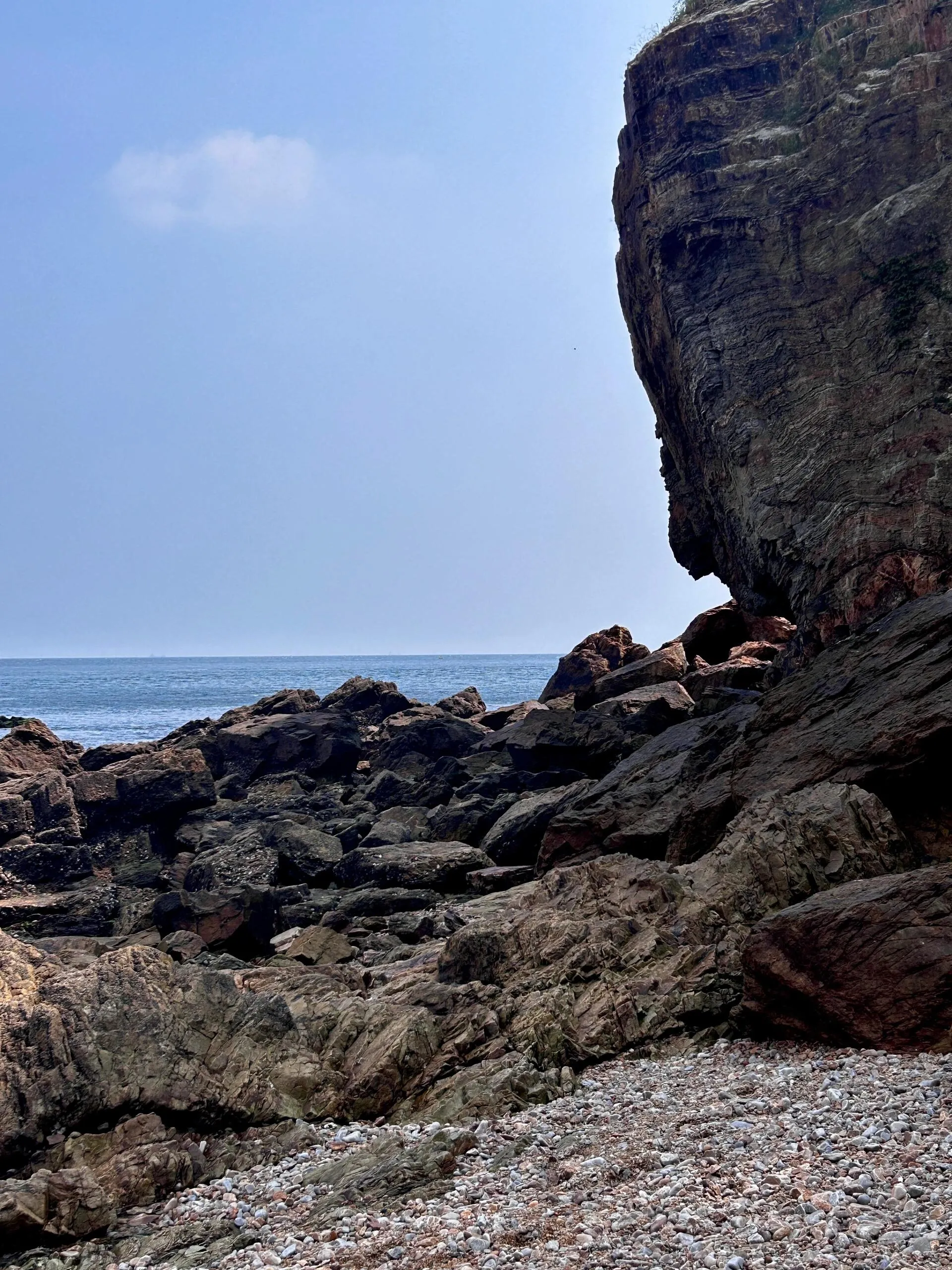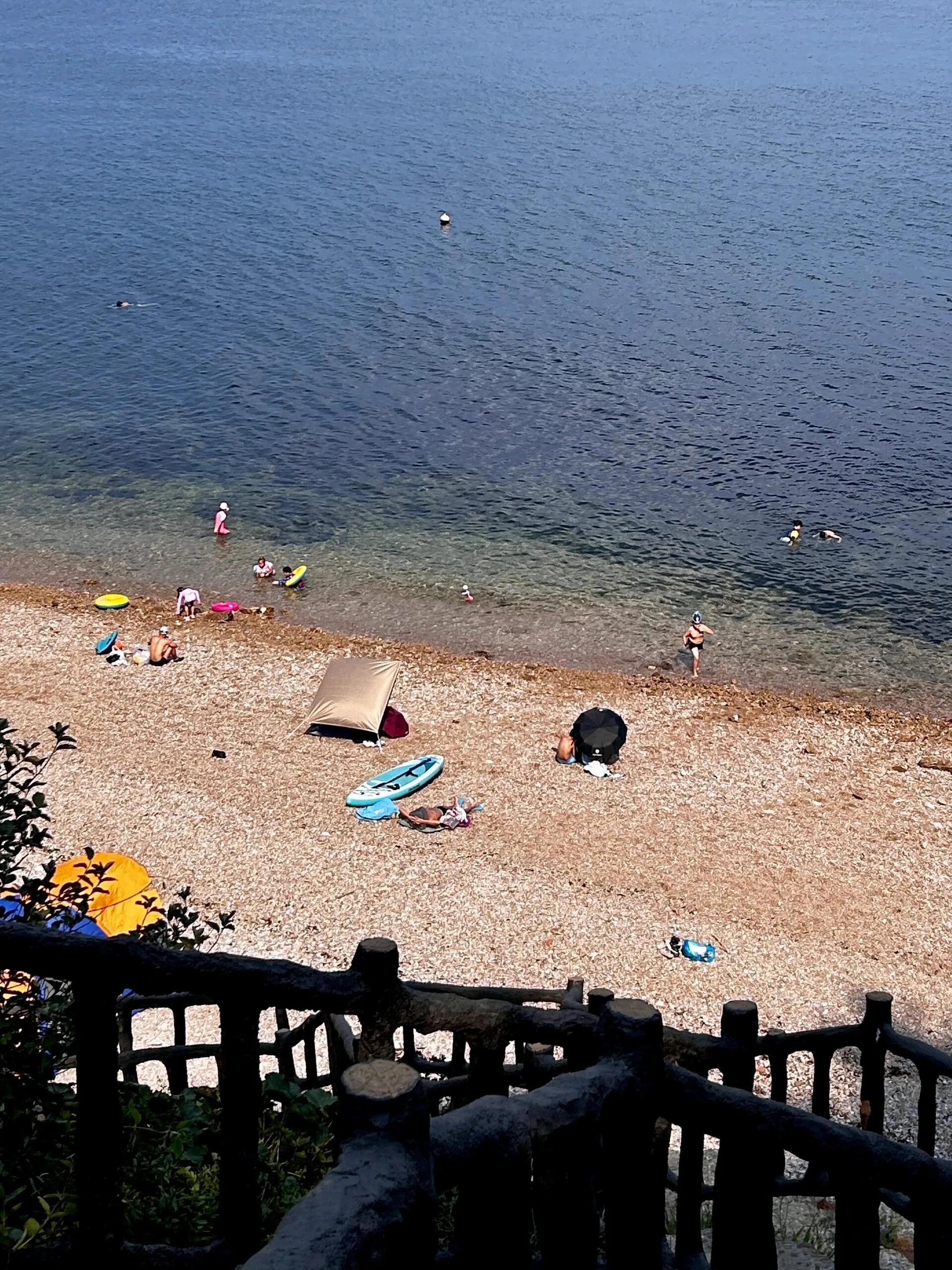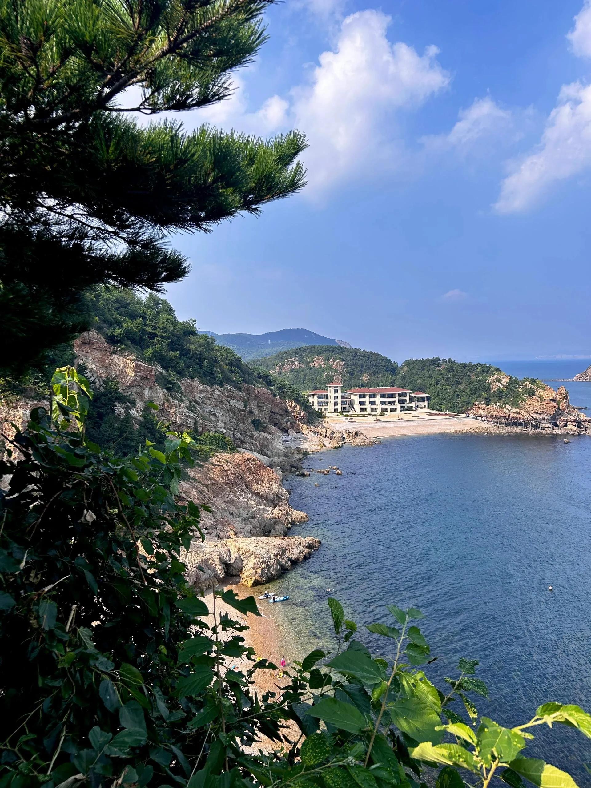 首推「小凉湾」,位于棒槌岛景区南侧。从山上的栈道下来,可以欣赏到绝美的海景。这里的海滩虽然不大,但游客稀少,反而吸引了不少本地人。他们带着小帐篷和浆板来此晒太阳、玩水,氛围悠闲惬意。值得注意的是,这里是小石头滩而非沙滩,不用担心鞋子进沙的问题。海水清澈见底,非常适合下水玩耍。