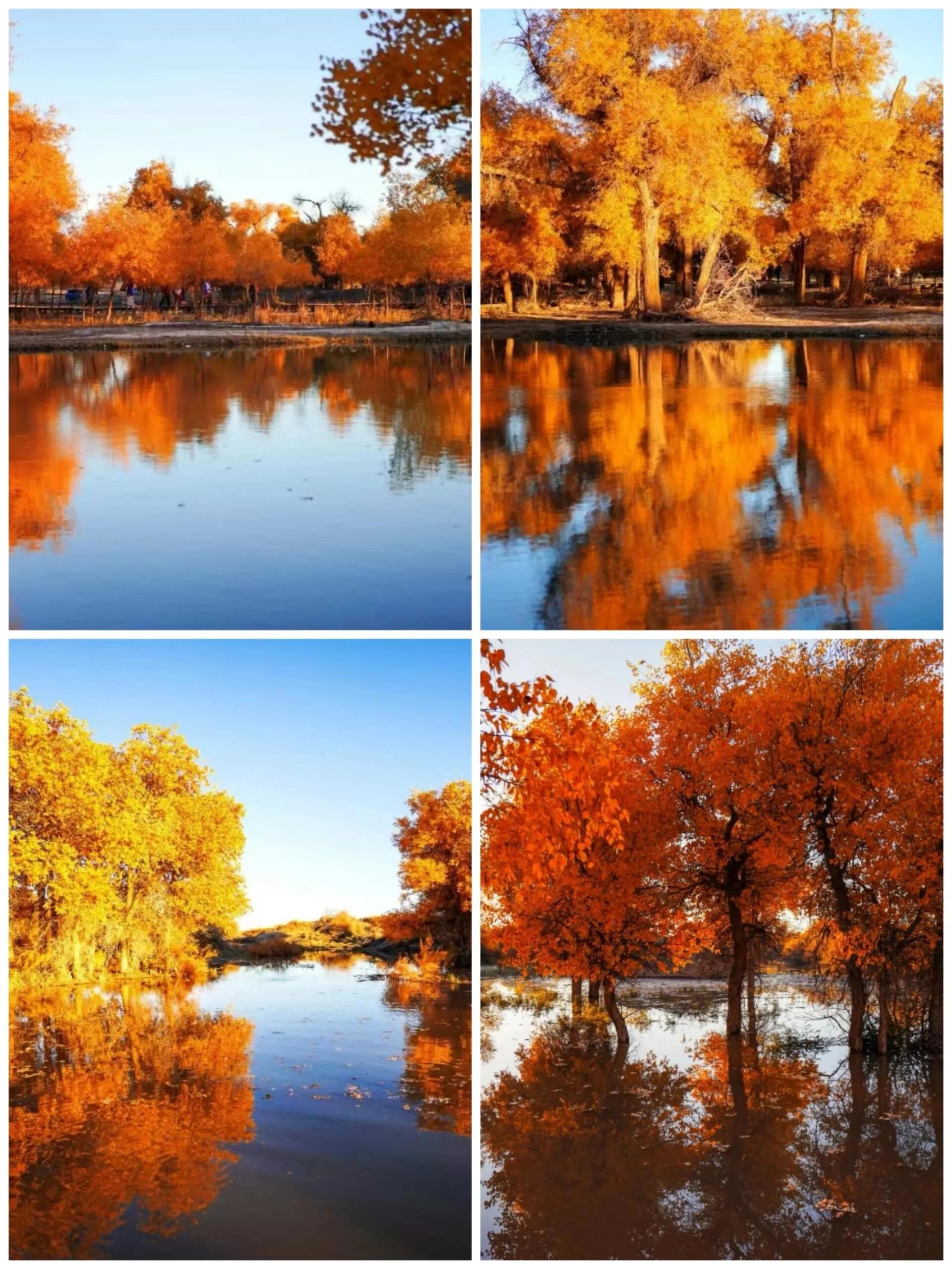 在胡杨林游览时,穿搭建议以红色为主。著名电影《英雄》就是在此取景,主角身着红色古装。白色裙装也很适合,在金色落叶的衬托下,仿佛置身仙境。