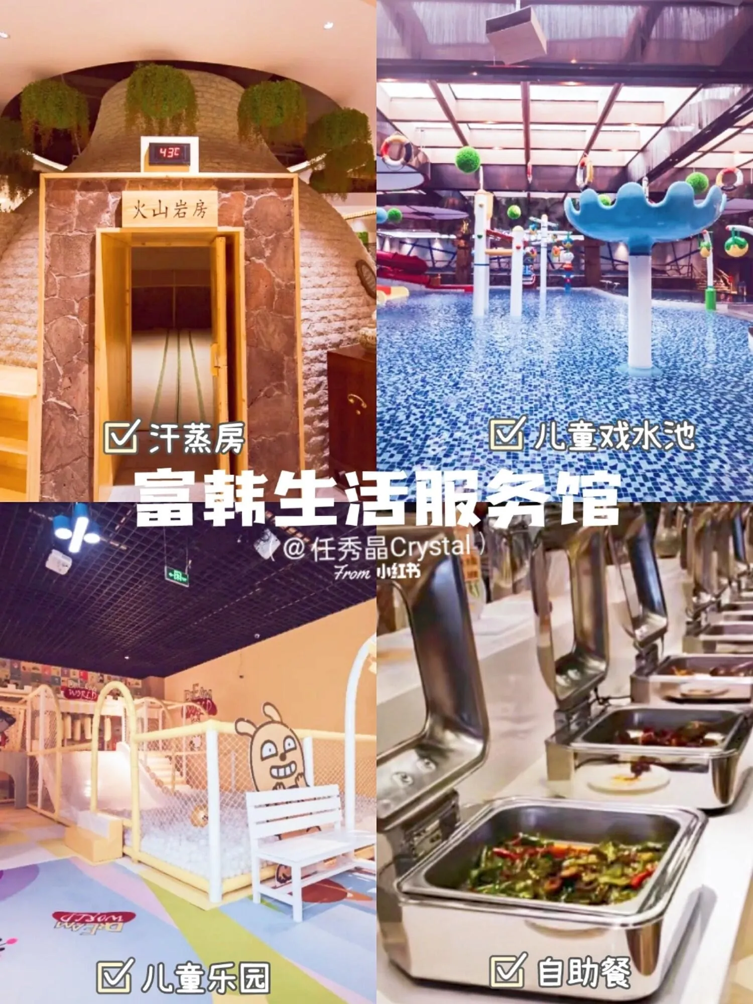缺点:儿童戏水池和泡汤在三楼,游泳完出来下楼比较不方便。韩餐价格有点贵,设施没有乐汤汇新