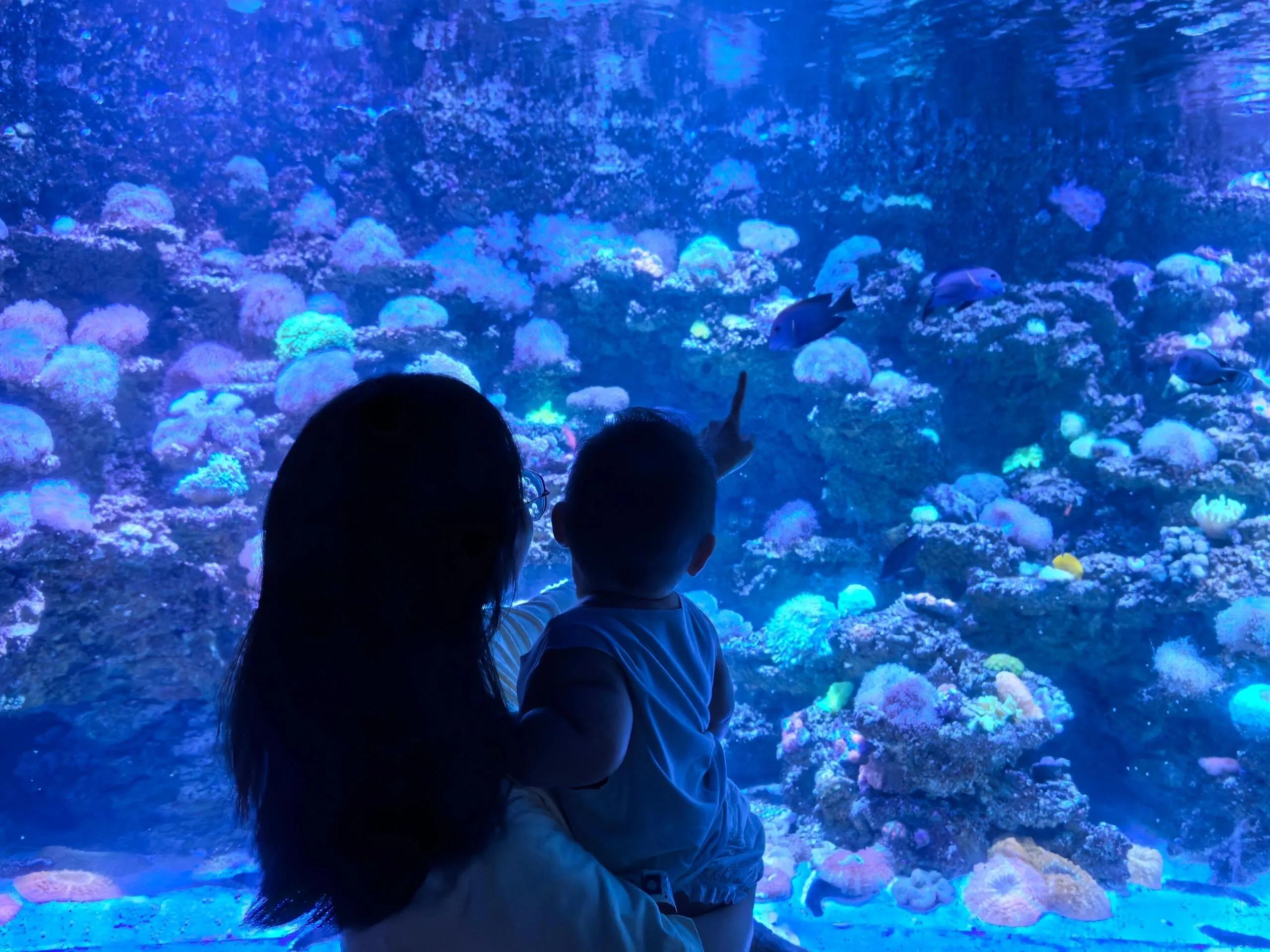 海底隧道的设计非常贴心,玻璃幕墙的高度恰好适合小宝宝观看。即使坐在婴儿车里,宝宝也能清晰地看到头顶和四周游动的鱼儿,仿佛置身于海底世界。这种独特的体验往往会让宝宝瞪大眼睛,充满好奇和兴奋。