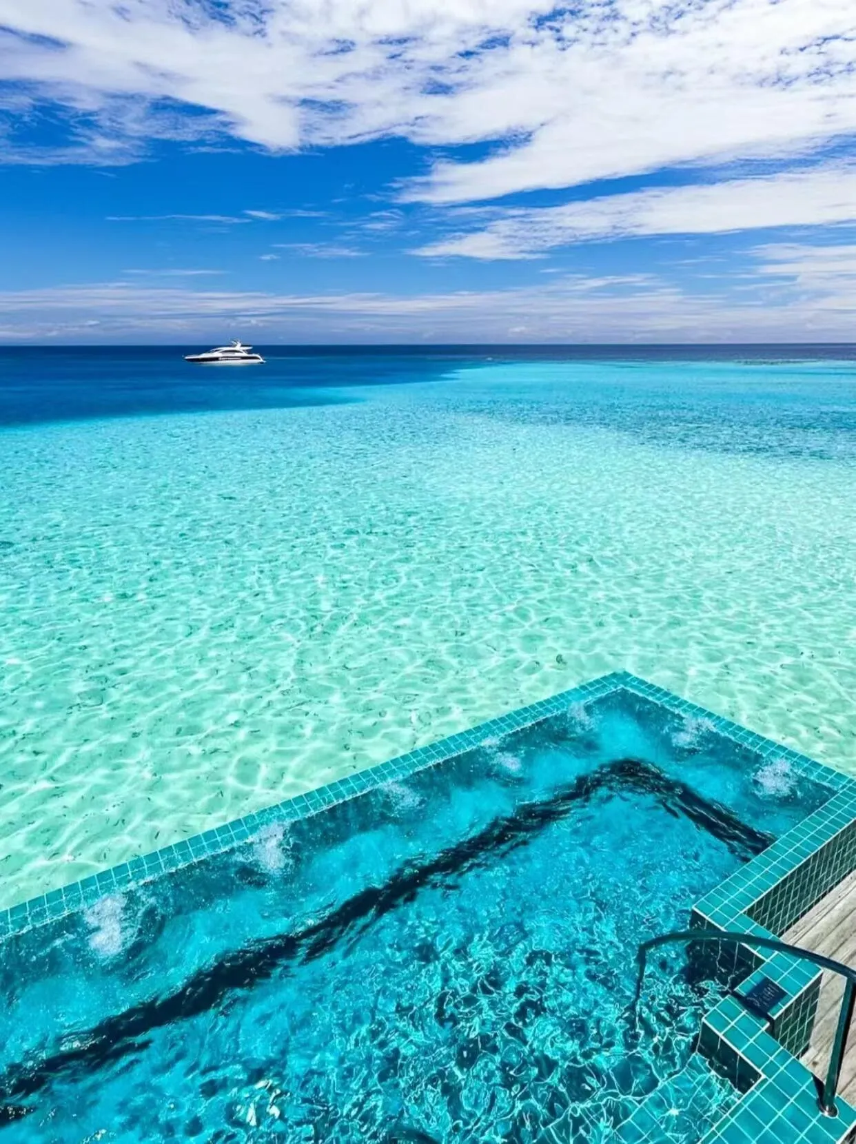 维拉沙鲁岛以其“果冻海”和“蓝眼泪”现象而著名。潟湖水域呈现清透的亮绿色,颜色分层明显,景色令人惊叹。岛上没有水草和防浪堤,提供360度全海景。岛上植被茂盛,沙滩细腻如面粉,质地极其柔软。这里是观赏“蓝眼泪”(荧光沙滩)现象频率最高的酒店之一。