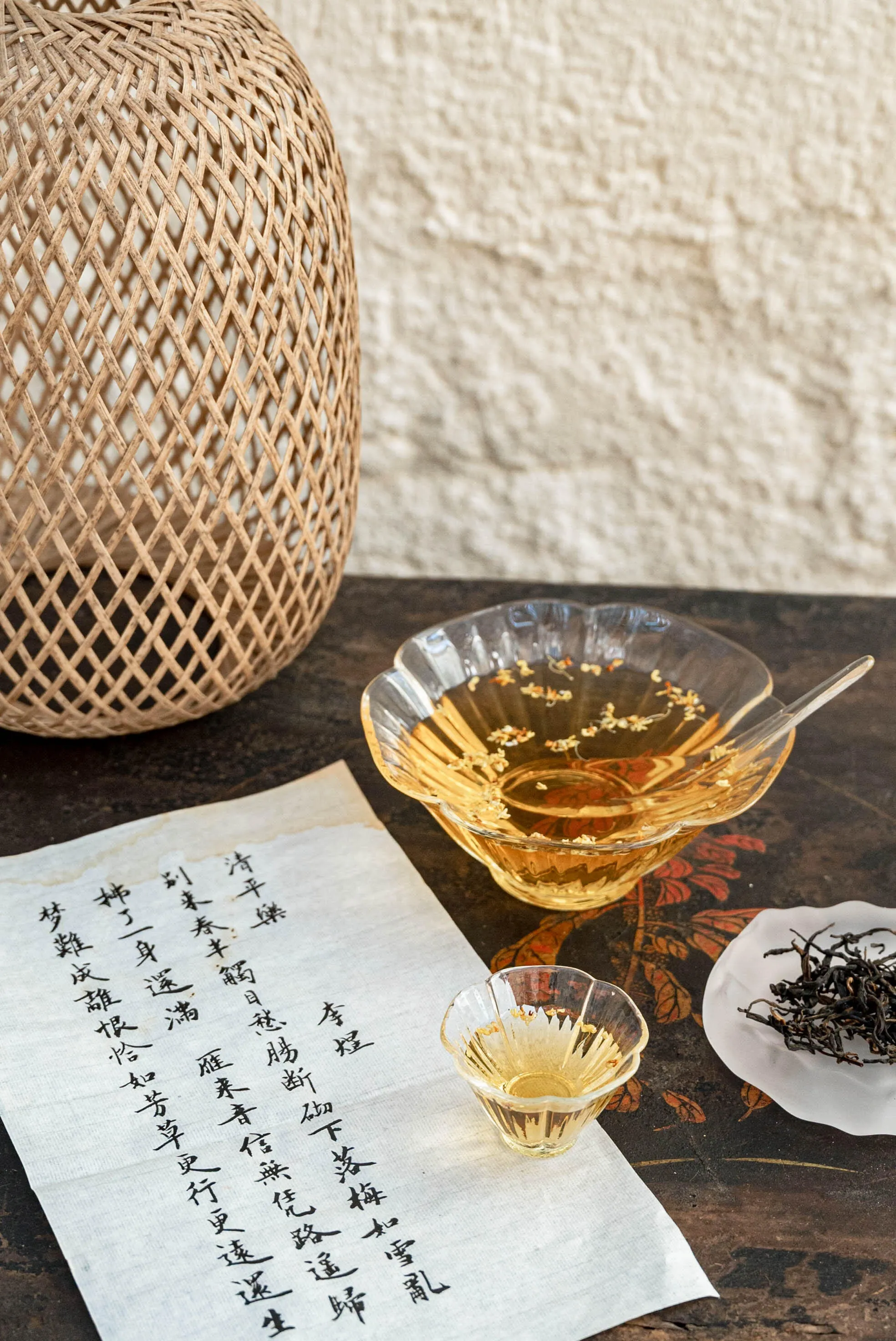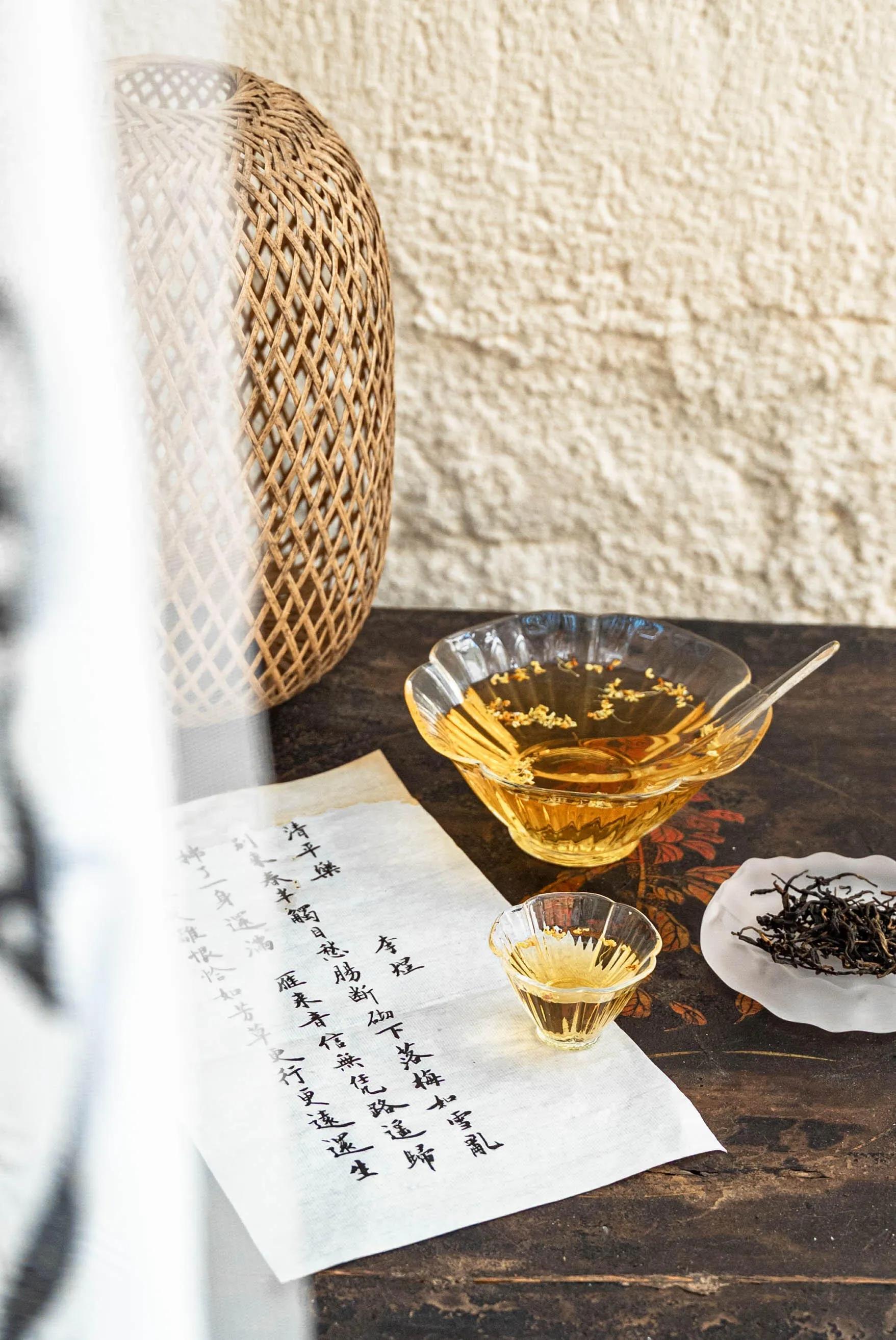 秋意渐浓时,品尝桂花红茶最是应景 。这里的茶汤是用勺子舀到小杯子里品味的。除了品茶,还可以亲手制作非遗香盘和手串,找到适合自己的香味,体验很是美好。