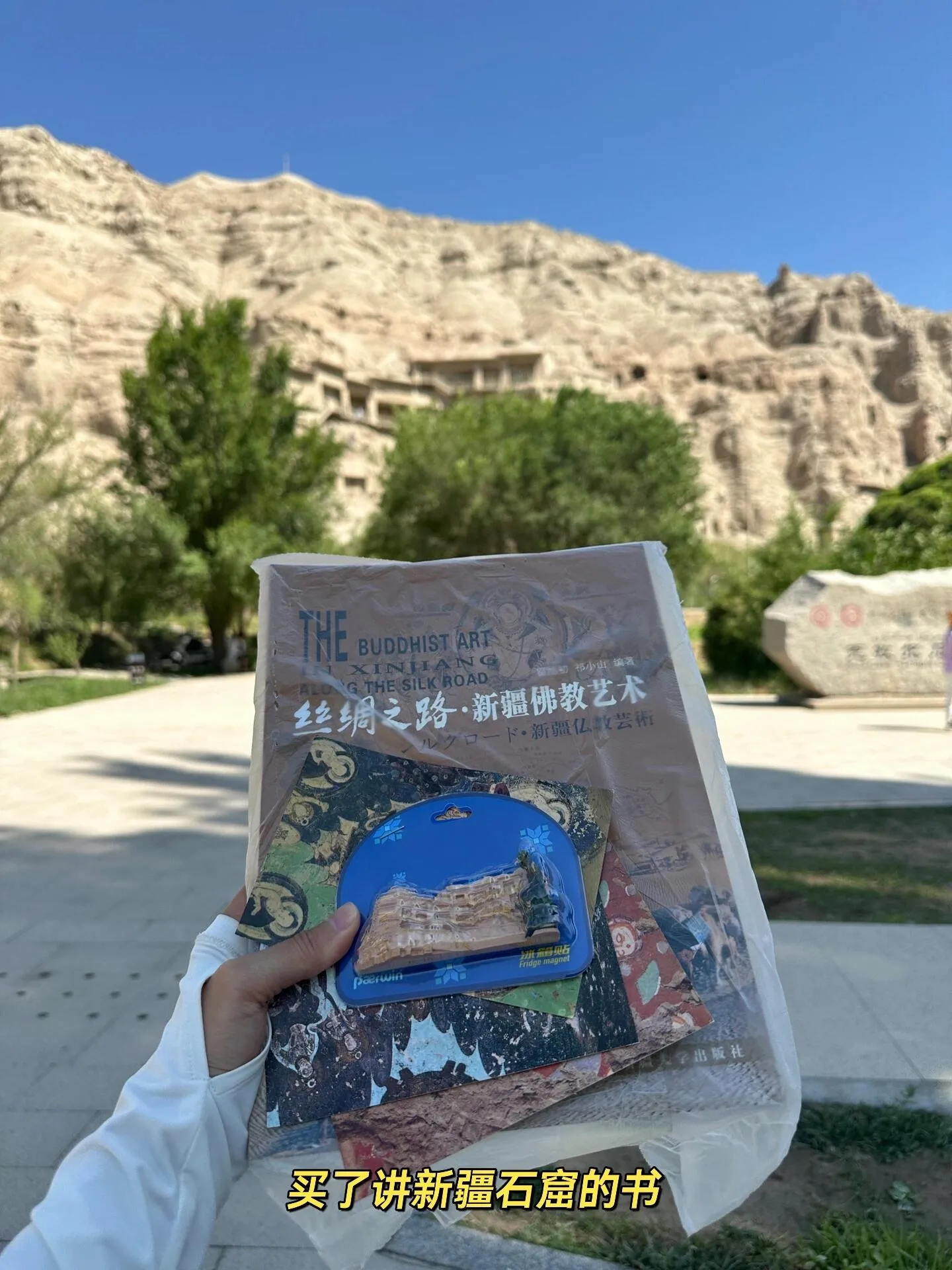 离开时,我买了一本介绍新疆石窟的书 ,通过文字和图片才真正领略到新疆石窟的精美。可惜这些美景如今只能通过书本再次欣赏了。