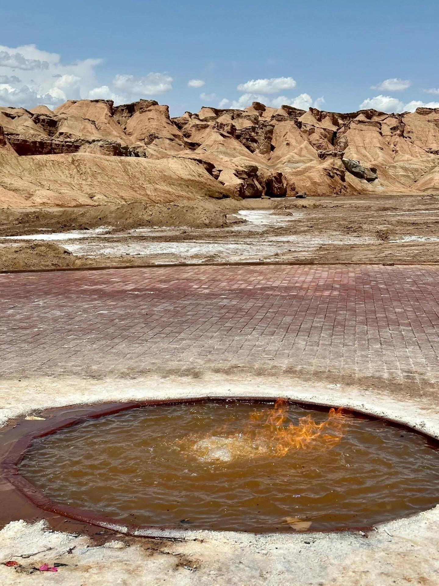 烈焰泉是个令人惊叹的野景点。 在这里,你可以亲眼目睹水火共存的奇观。这种独特现象归功于地下天然气,它不断从泉水中冒出,使得火焰能够在水面持续燃烧。即使强风将火焰吹灭,也能立即重新点燃。虽然是小众景点,但仍吸引了不少游客。据说晚上还有人专门来这里烧烤喝啤酒,不过也因此泉水并不十分清澈。