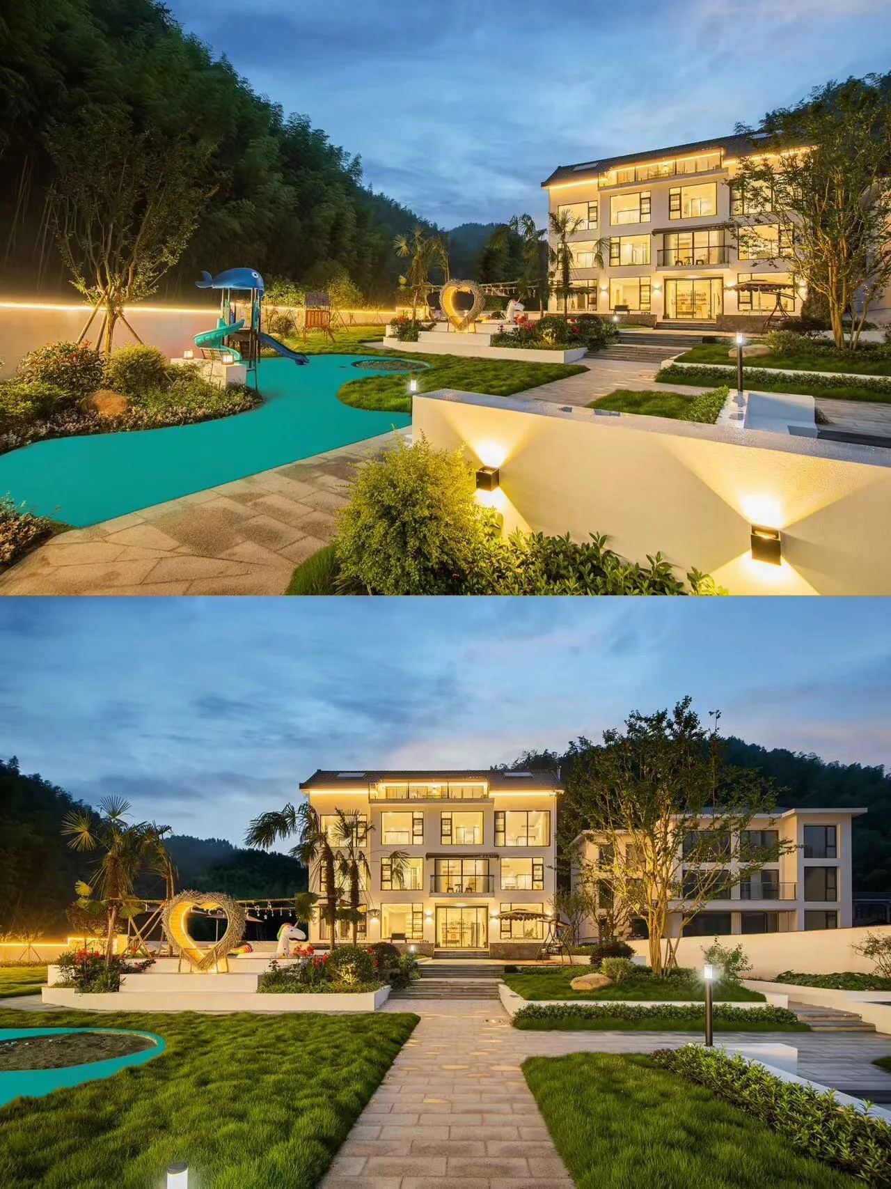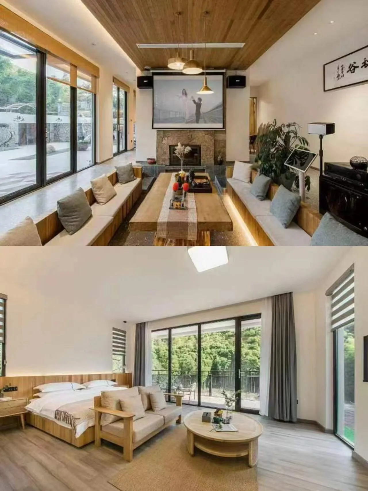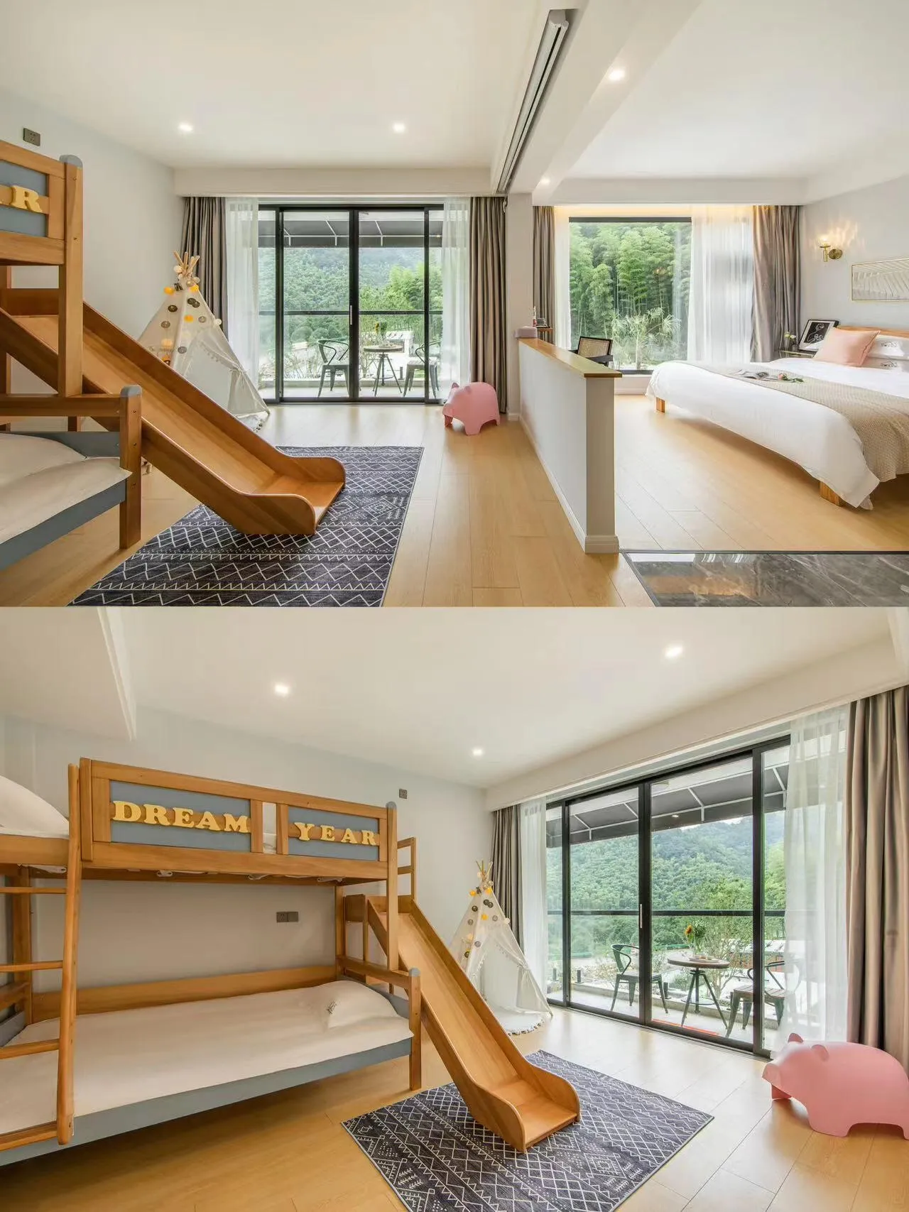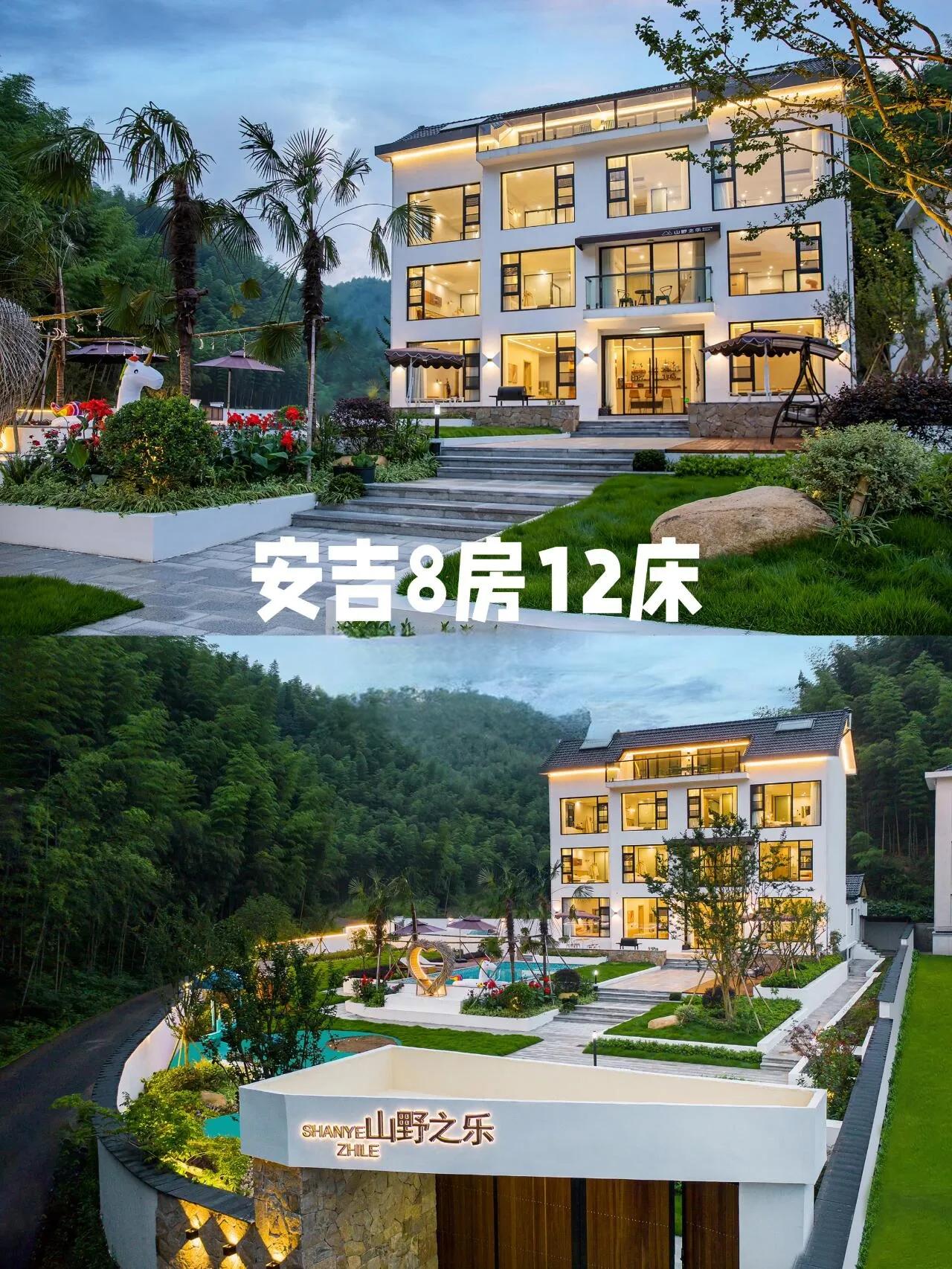 这家民宿位于安吉,设施齐全,适合各种类型的游客。室外设有泳池、儿童乐园休闲区,包括秋千、滑梯、沙坑和小菜园。还有鱼池、篝火晚会场地和院内停车场。室内娱乐设施丰富,包括壁炉、KTV、棋牌室、会议室、巨幕电影、台球、酒吧和桌游。此外,还提供DIY厨房,甚至允许放烟花。整个民宿占地1500平方米,拥有超大花园。