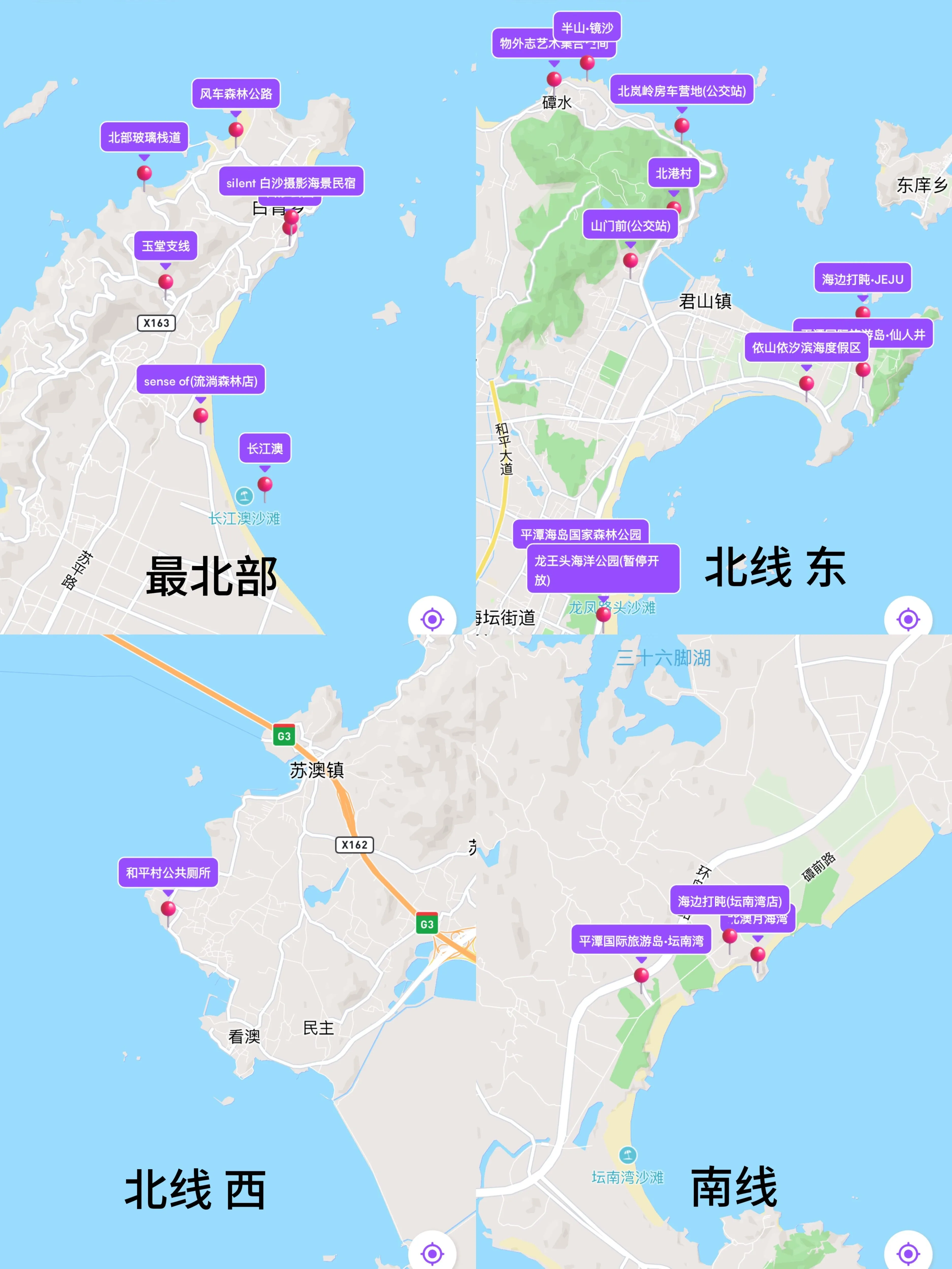 住宿推荐靠近龙王头,第一晚选择北线也比较方便。
