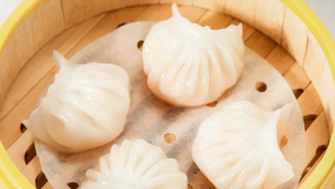 色白如雪,点胭脂红如桃花,微糖作馅,淡而弥旨。