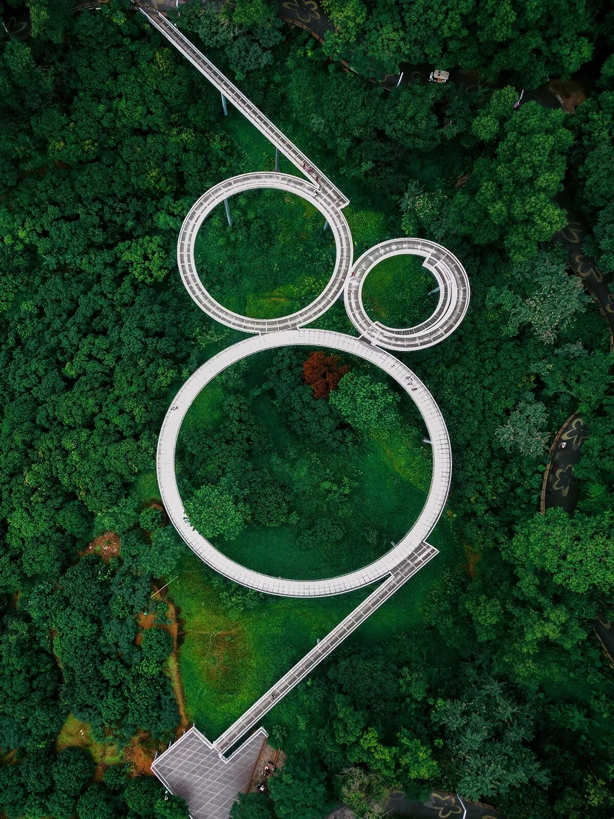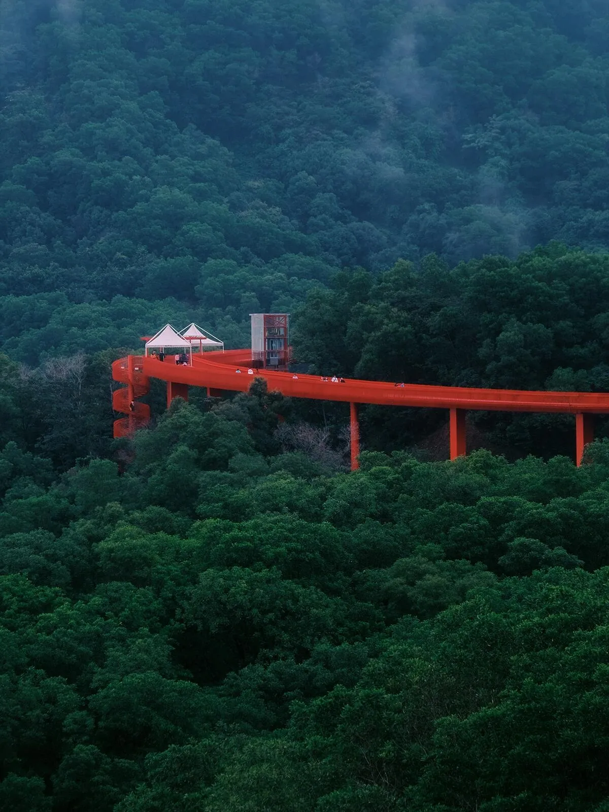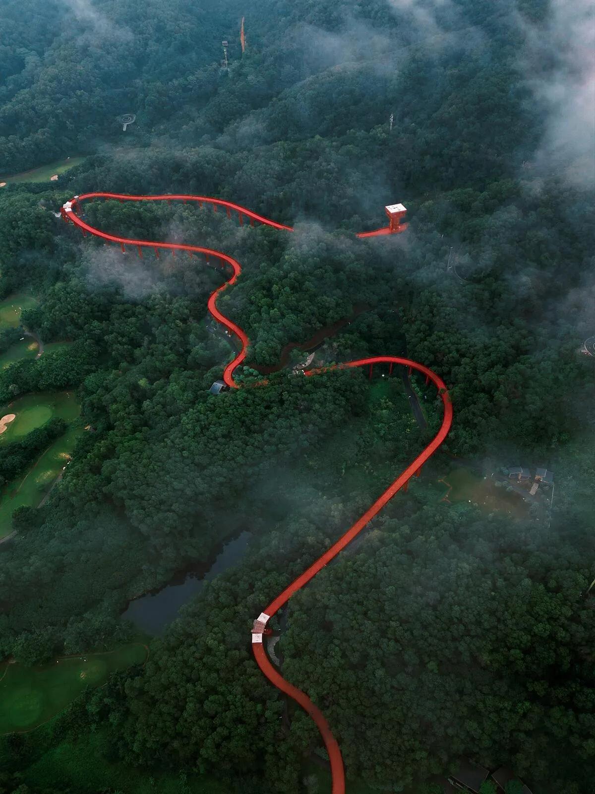虹桥公园是一个多功能的户外休闲场所,适合轻松徒步、户外露营、野餐和拍摄等活动。公园的核心景观——虹桥,整体采用了中国红作为主色调,缠绕在青山绿水间,宛如仙女腰间的红色腰带,让人耳目一新。这座桥全长4千米,宽5米,平均高度8米,是中国国内第二大钢结构单柱多曲景观桥。