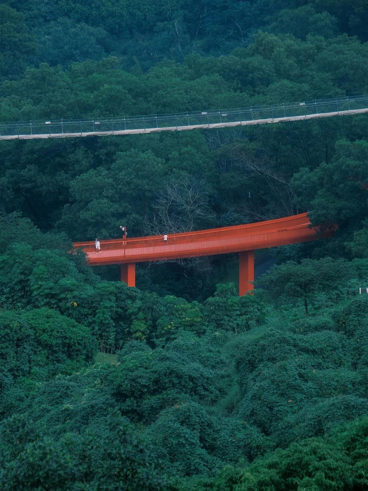 雨后的虹桥公园更显意境深远。红色的桥梁在茂密的树林中格外醒目,春日宜人,鸟鸣山幽,非常适合周末出来散步,亲近自然。