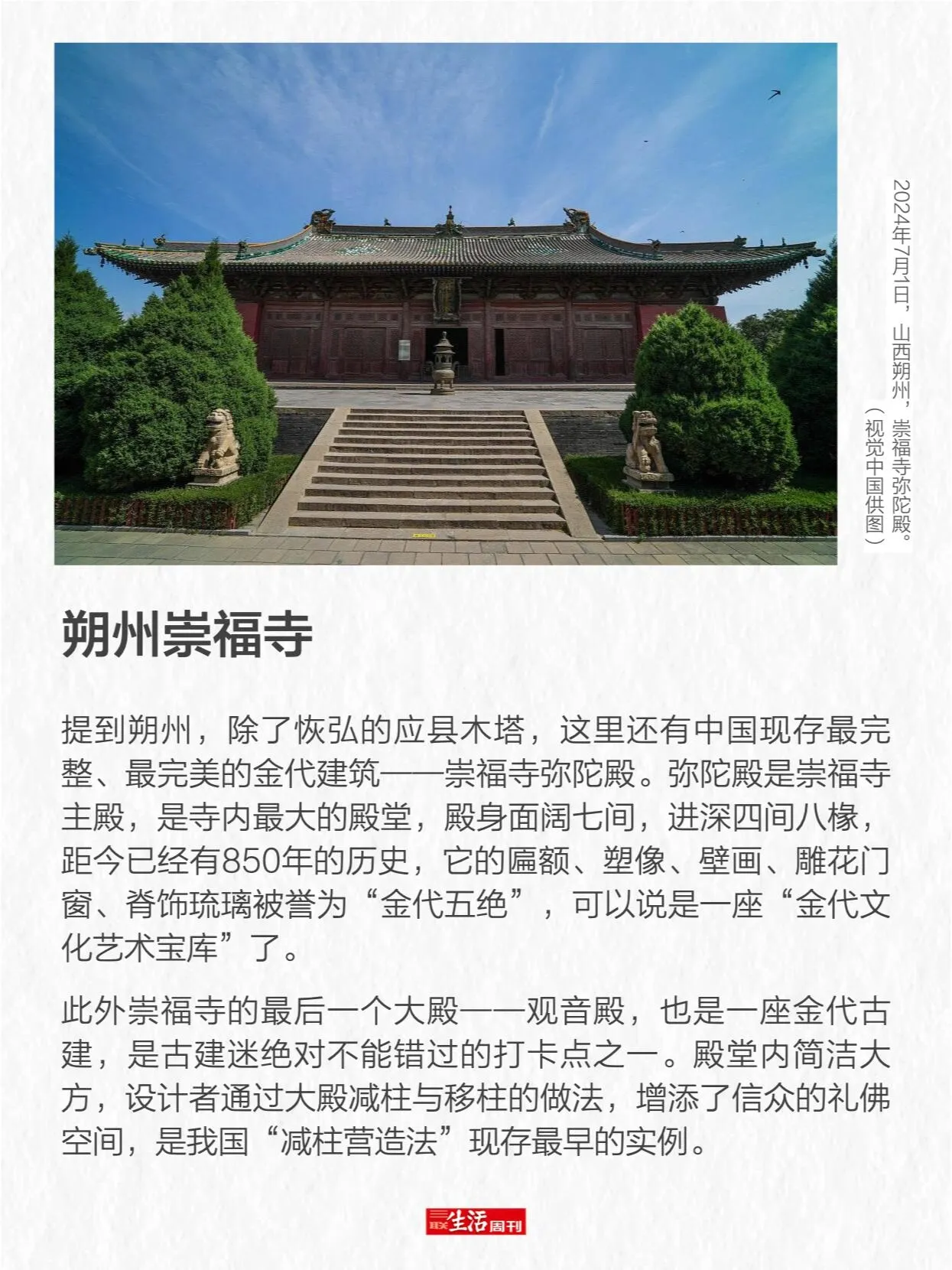 值得一提的是,山西省的取景地多达27处,如玉皇庙、崇福寺、小西天、铁佛寺、双林寺等。这并非偶然, 山西被誉为“中国古代建筑宝库” ,是中国古建筑遗存最多的省份,且时代序列完整、形制齐全,数量与密度全国无出其右。 山西现存古建筑2.8万多处 ,其中元以前木结构古建筑遗存495座,占全国总数的80%。全国仅存的3座唐代古建全部在山西,明、清时期的古建筑更是数量庞大。