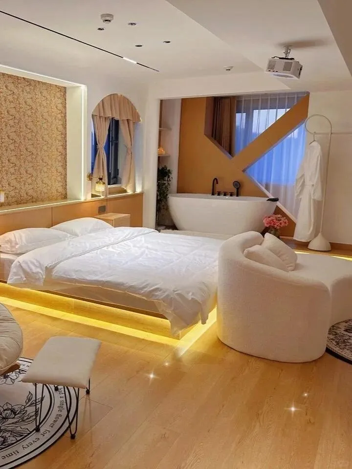 房间环境温馨舒适,宽敞干净。卫生间采用干湿分离设计,非常贴心。房间还配有小客厅,空间感十足,不会让人感到局促。这样的设计很适合带父母或全家出游,不用担心长辈不适应。