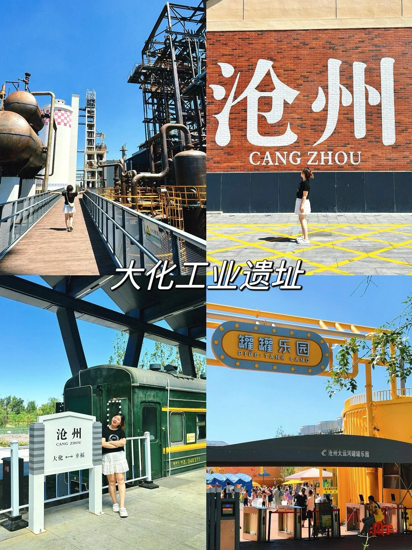 第二天的亮点是大化工业遗存文化区,这里充满赛博朋克风格,很适合拍照。可以参观大化展览馆,了解其发展历程,还能打卡沧州二字大墙和时光车站。附近的罐罐乐园适合带孩子玩水。