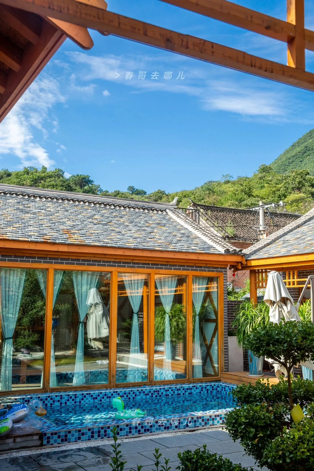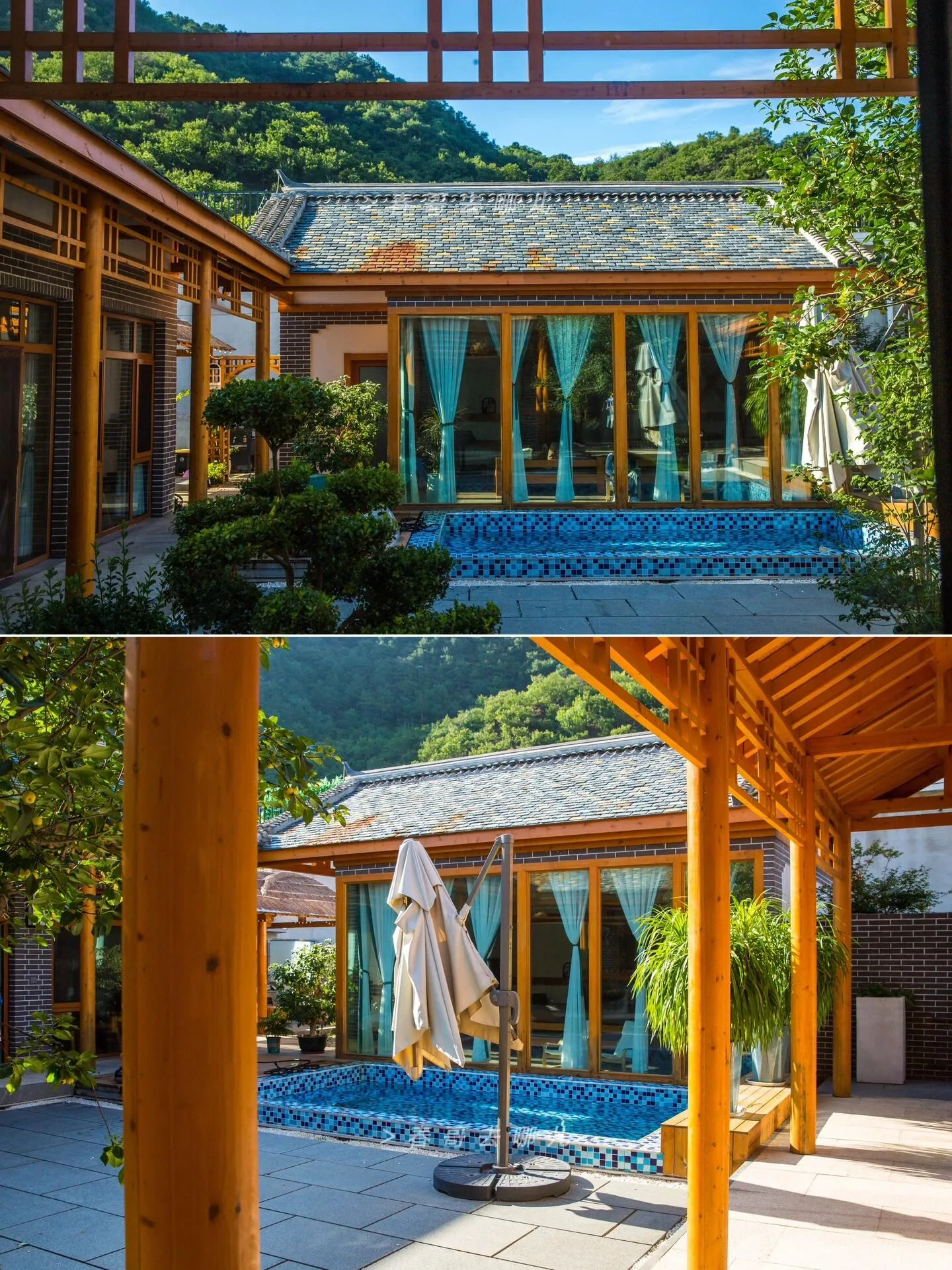 在村南的闲云山房桂香民宿是一处值得推荐的住宿地。虽然外观低调,但内部别有洞天。 这座四合院虽然面积不大,却设有4间客房、客厅、餐厅、厨房和凉亭 ,院子中央还有一个小泳池,设施齐全。