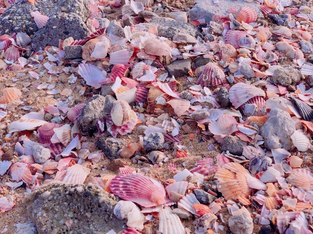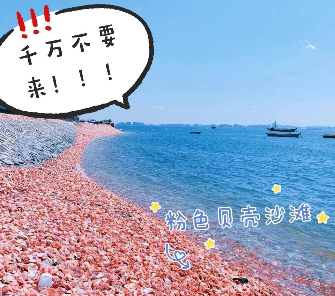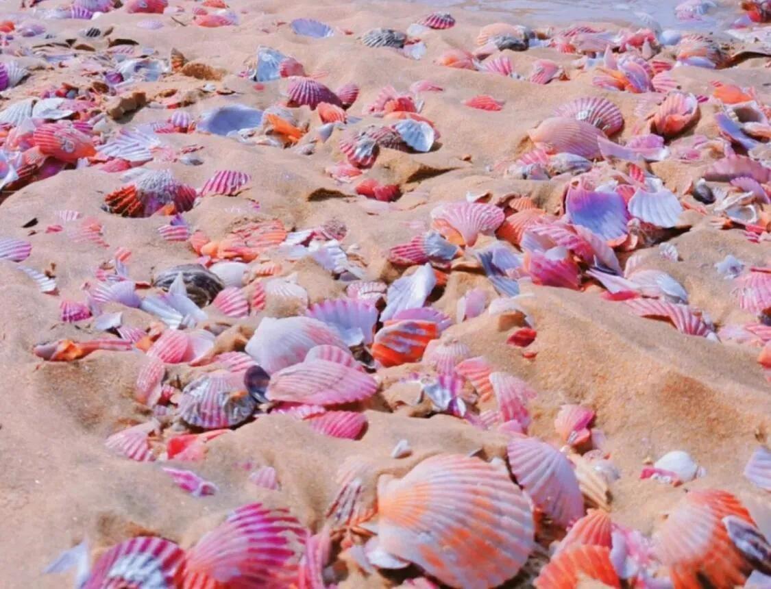 这片独特的粉色沙滩并非由盐湖或藻类形成 ,而是因为这里是扇贝养殖区,大量粉色贝壳被海浪冲到岸上造成的。来这里的游客不多,可以尽情拍照。不过需要注意的是,裸眼看上去沙滩并不是很粉,需要开启滤镜才能拍出效果。而且很多贝壳已经被踩碎,不开滤镜很难拍出理想的效果。老实说,专门来找粉色贝壳可能会有些失望。