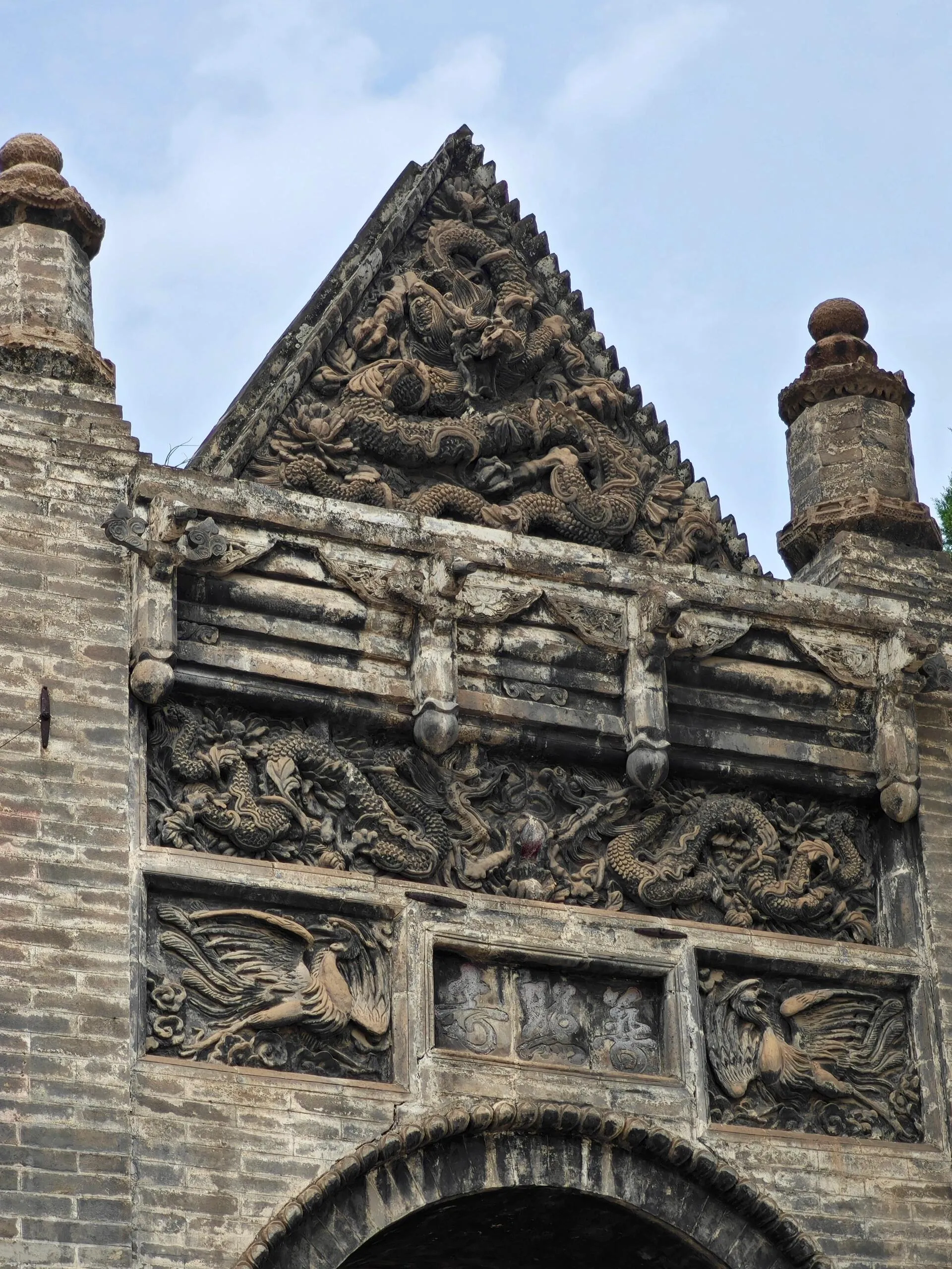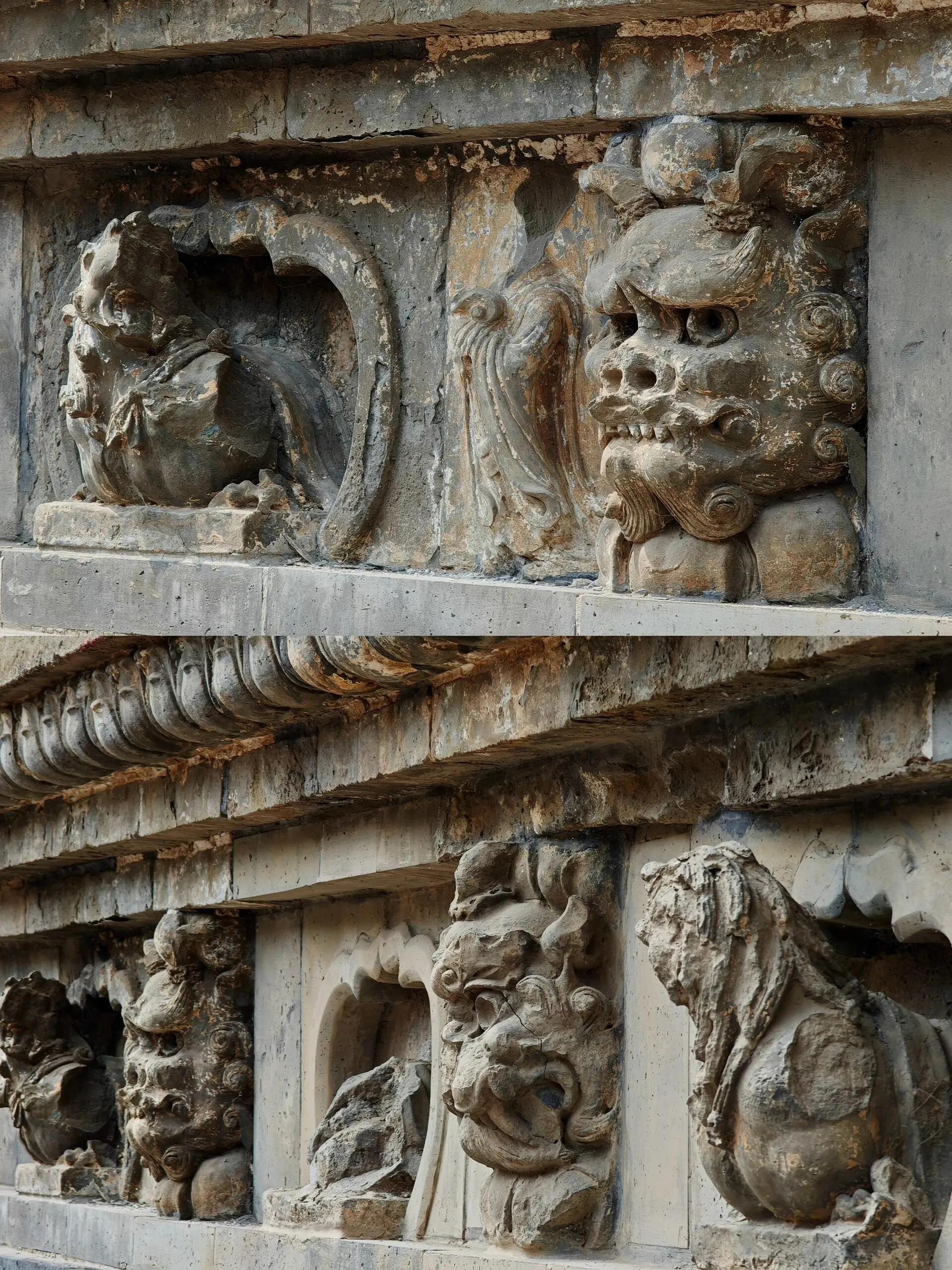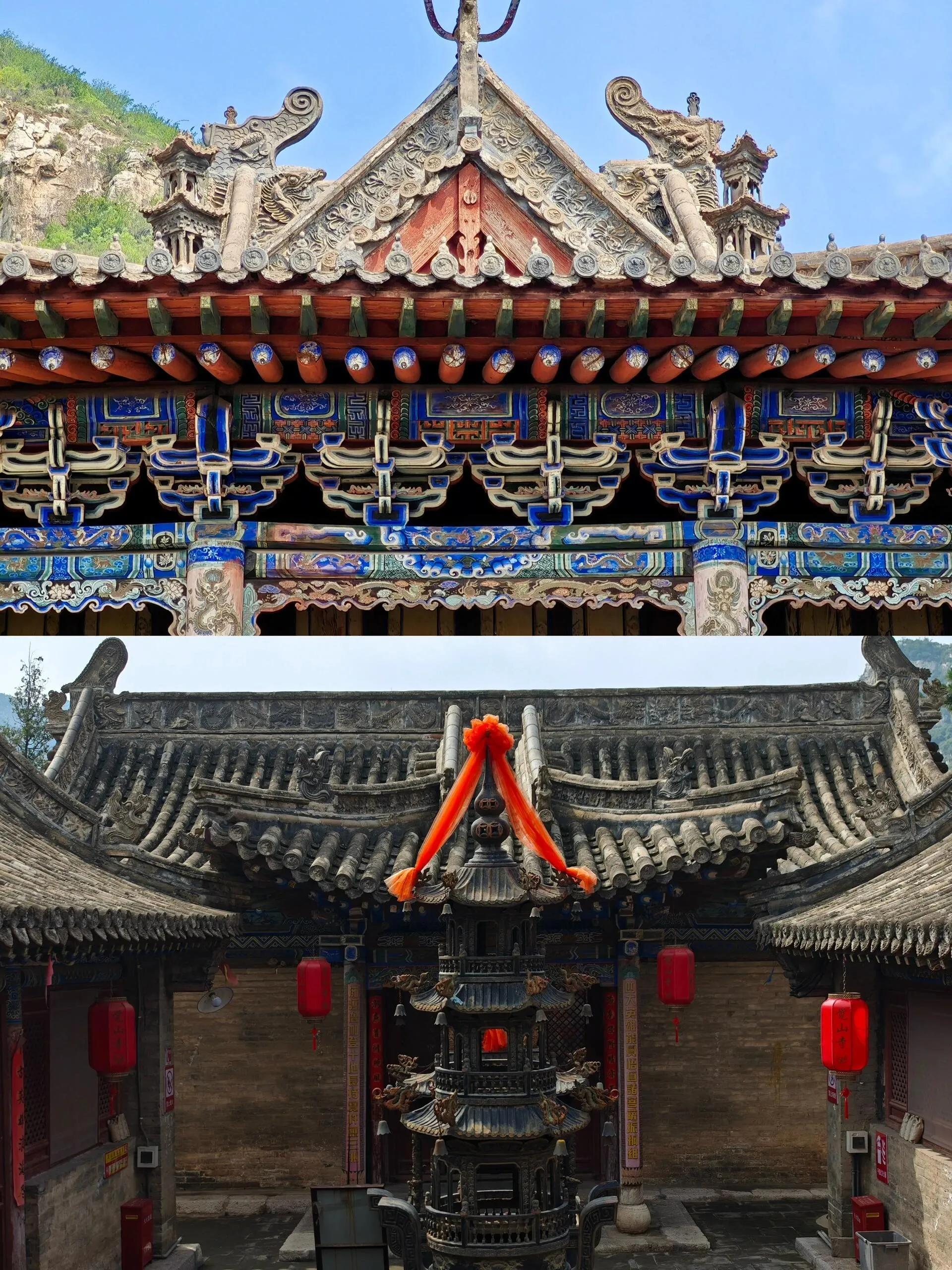 寺中各殿也都有壁画值得一看。大雄宝殿东西墙壁上有大幅壁画,虽为清代所绘,却不是佛教题材,而是道教内容。其他殿内的壁画年代不详,内容同样有趣。这些壁画大多被新的佛像所遮挡,仔细观察可以发现明显的人为破坏痕迹,如各种毁容和火烧的痕迹,见证了历史的变迁。