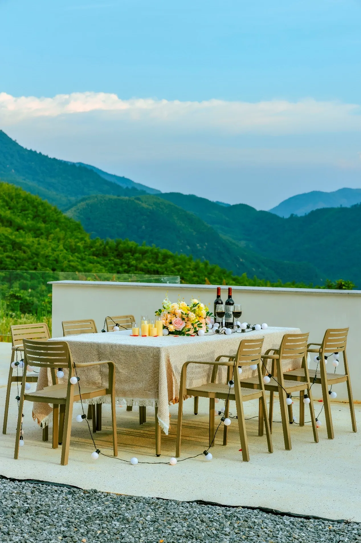 这家民宿提供多样化的用餐区域,包括卡座、包厢和观景长桌。其中,室外观景长桌尤为推荐,让guests可以一边享用美食,一边欣赏夕阳、日落和星空的美景。