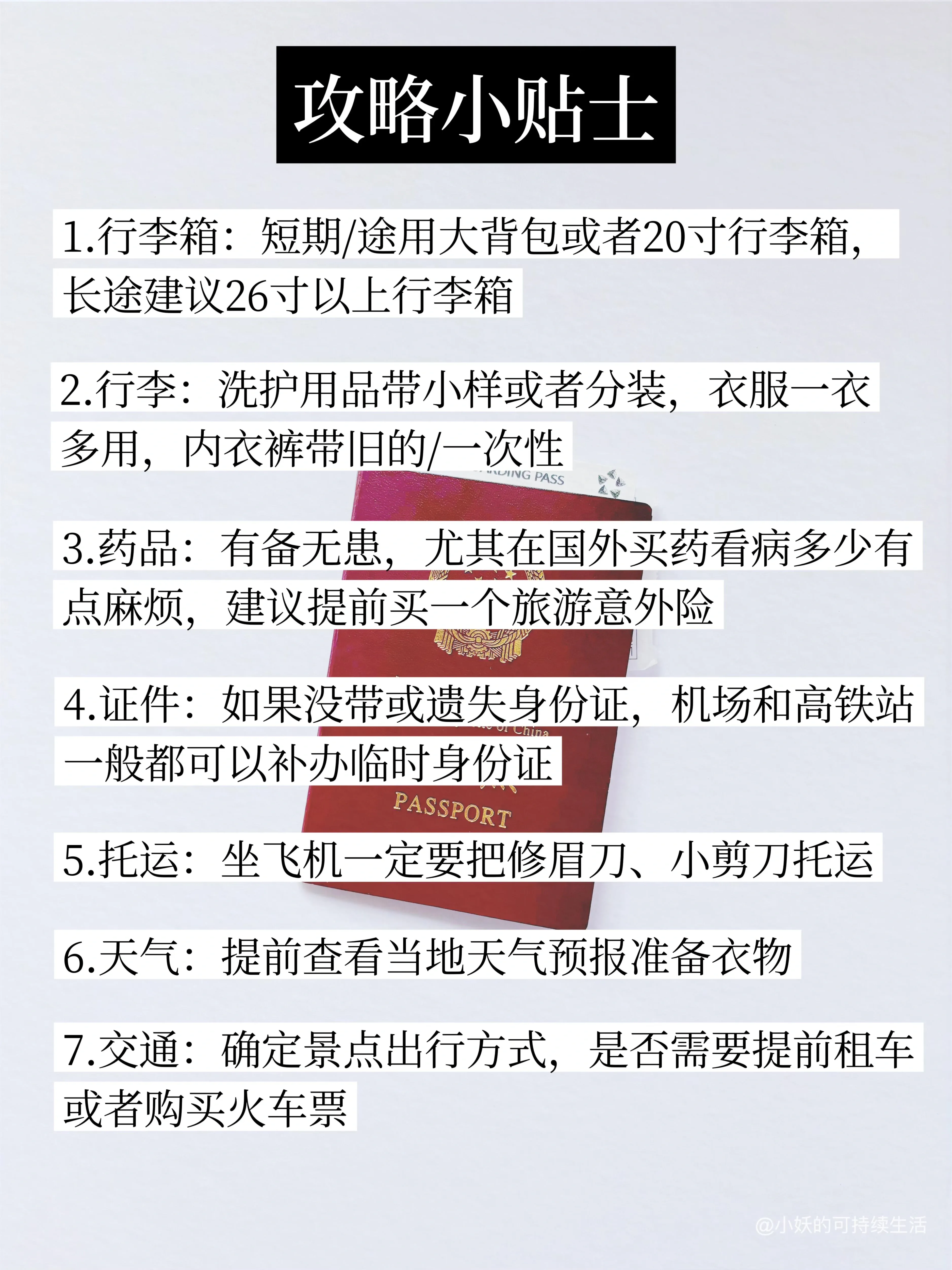 记住,旅行最重要的是平安和开心。即使偶尔忘记带某些物品,也不要让它影响你的心情。希望这份清单和小贴士能帮助你更好地准备即将到来的旅程,祝你旅途愉快!