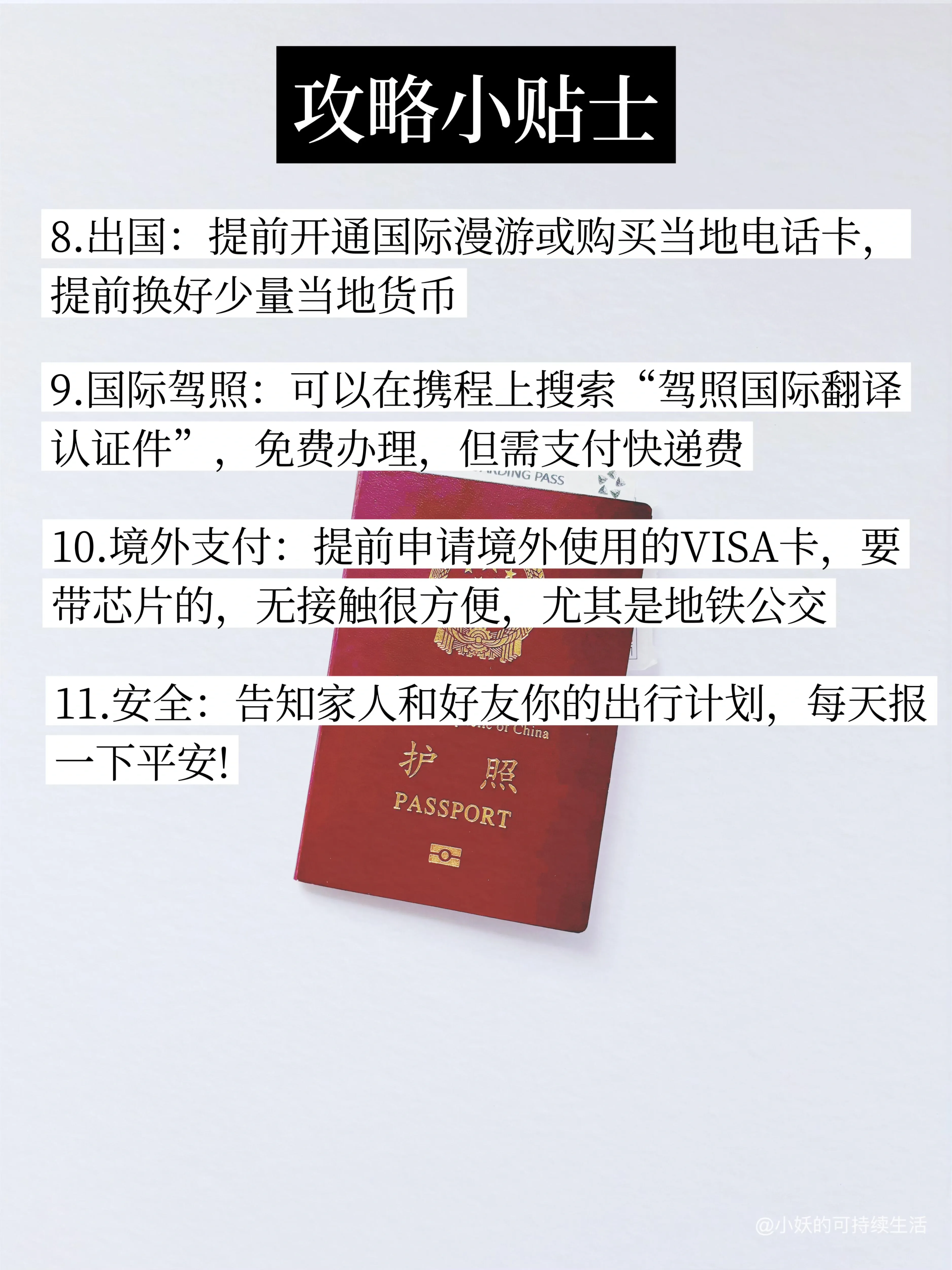 出国准备:开通国际漫游或购买当地电话卡,兑换少量当地货币。