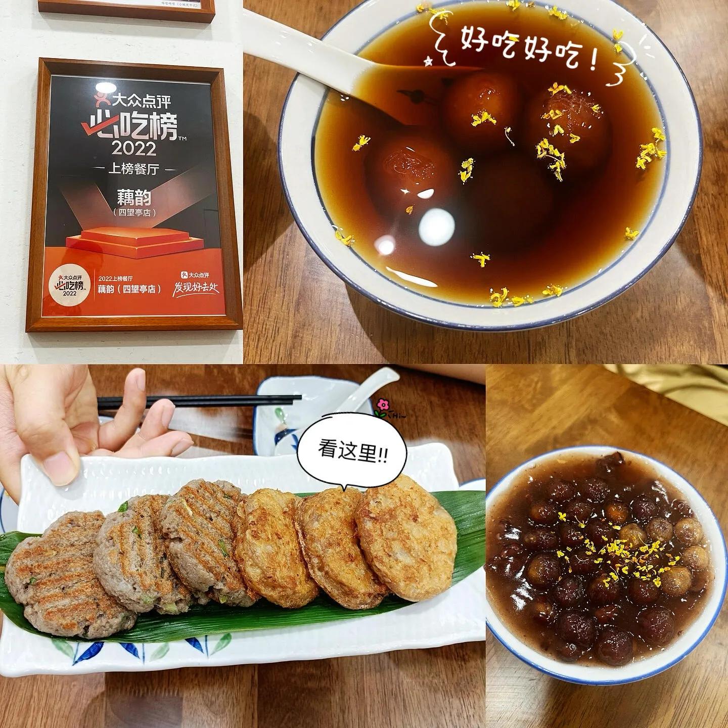 藕韵是此行的又一亮点。 四喜丸子外皮劲道糯滑,搭配香脆的藕夹,咸甜交织,口感丰富。 值得一提的是,由于丸子本身较甜,建议点选无糖饮品搭配。