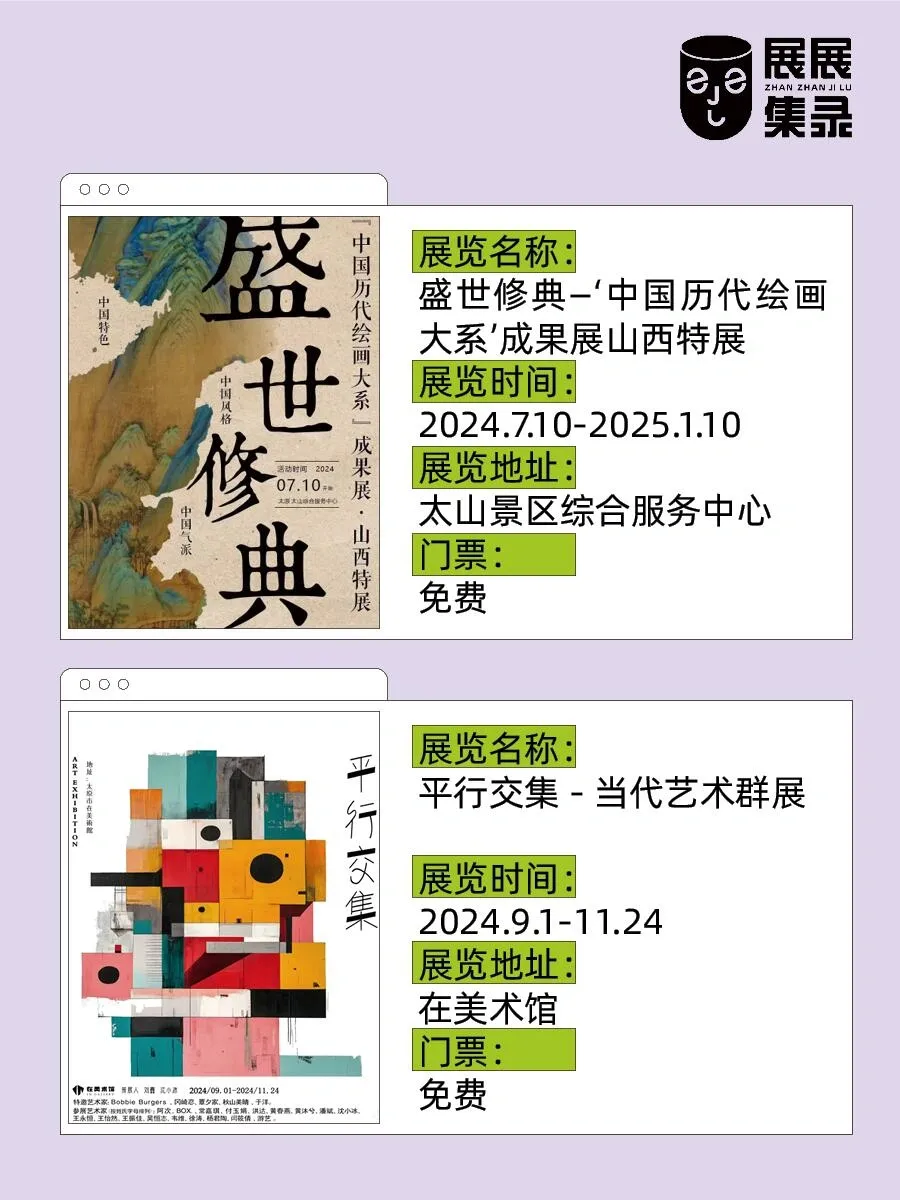 太原9、10月的展览真是精彩纷呈!这里有14场精选展演,涵盖了从古代壁画到现代科技艺术的各个领域,让人仿佛穿越时空,体验不同时代的艺术魅力。