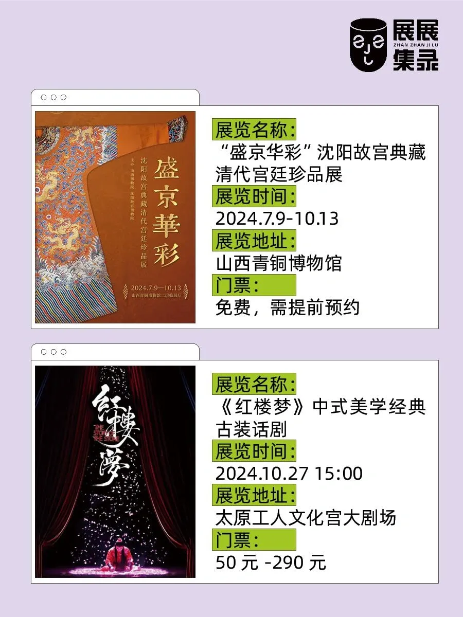 除了展览,还有一场《红楼梦》中式美学经典古装话剧将于10月27日在太原工人文化宫大剧场上演,票价50-290元。