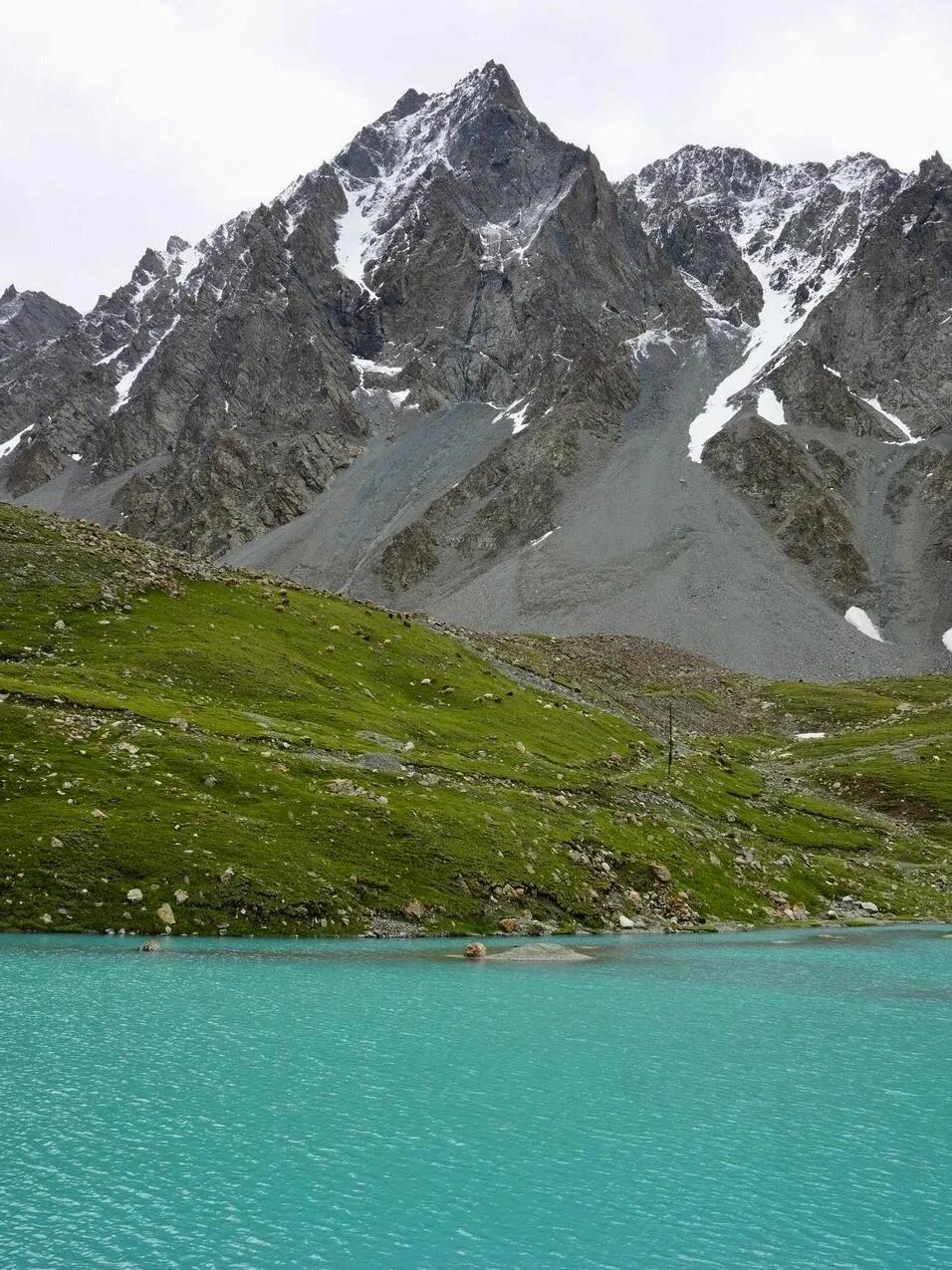 蓝心湖:如果你从南向北行驶,过了哈希勒根达坂最高点就能看到。碧蓝的湖水与雪山相映成趣,构成一幅高级的自然画卷。