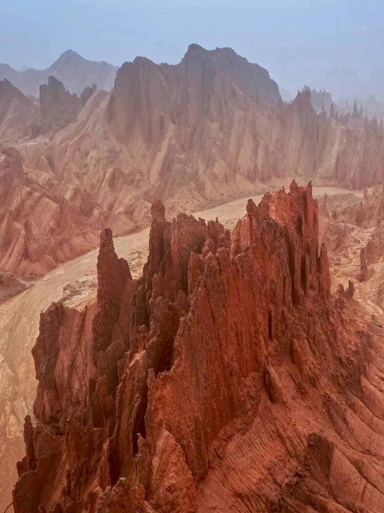 库车红石林:位于天山神秘大峡谷往南约五公里处,这里就是著名的“魔界小火车”所在地。