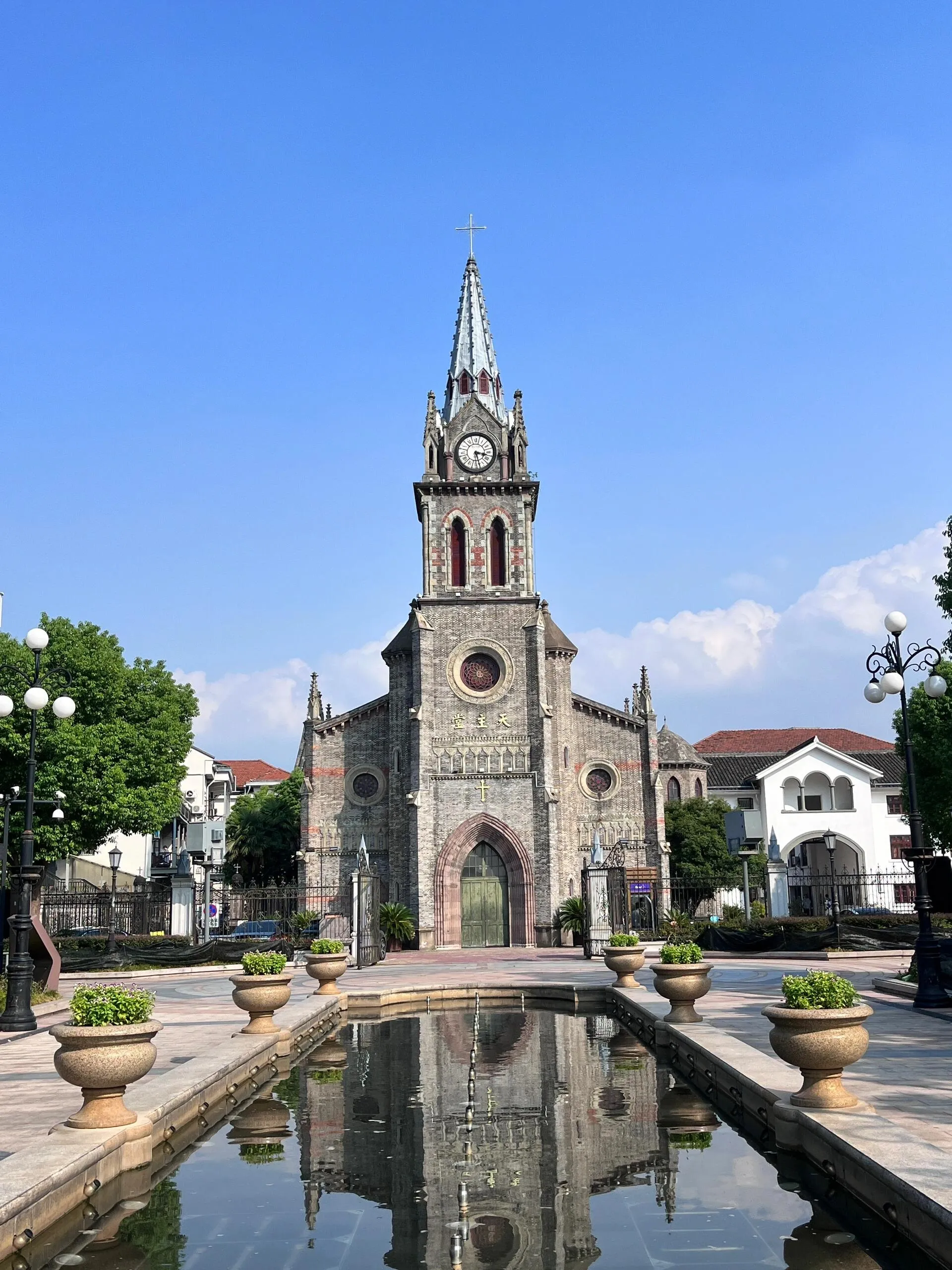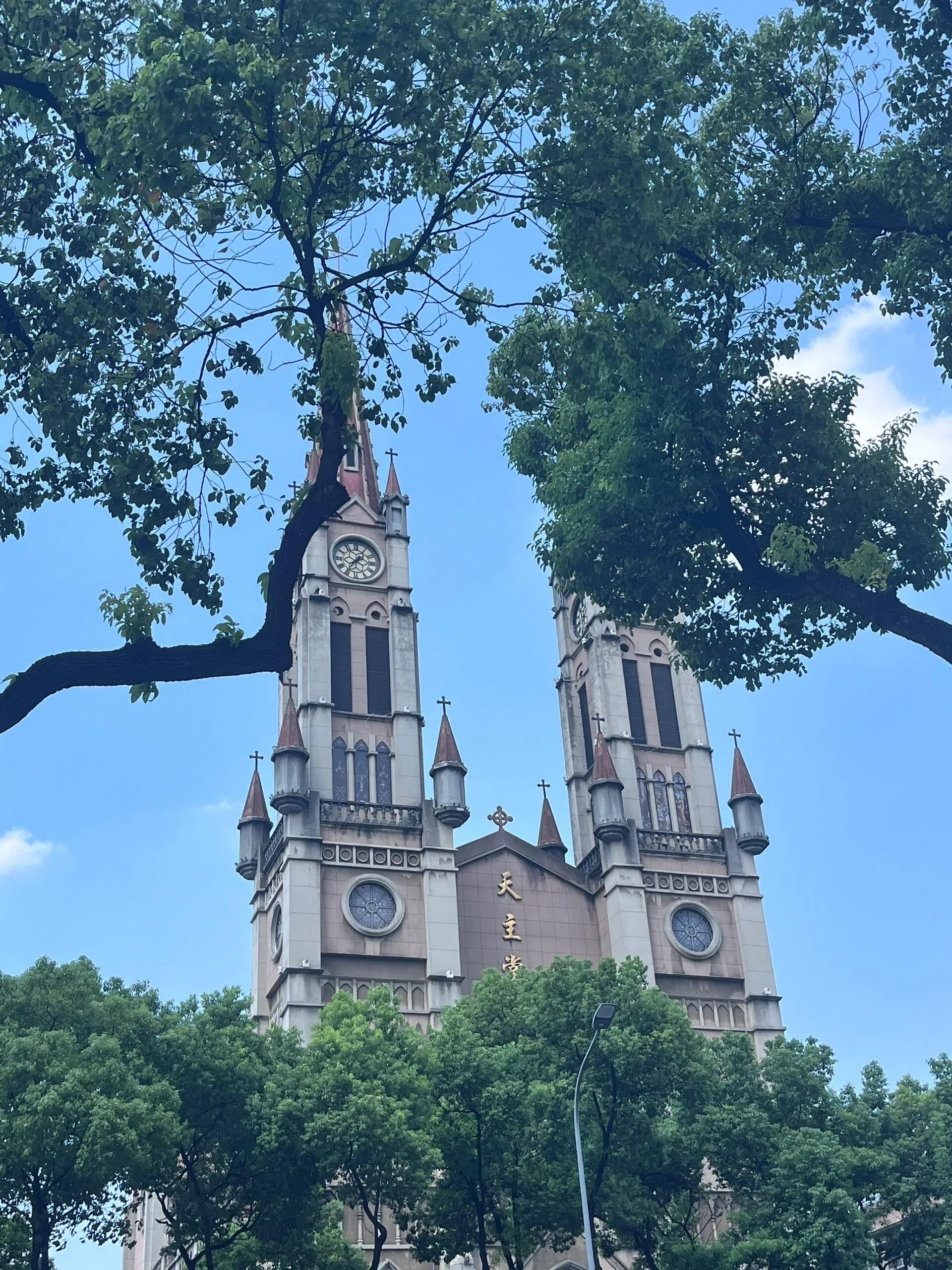 接下来是 城隍庙 ,免门票参观。附近还有天主教堂和天一广场,这几个景点距离都不远,步行即可。在天一广场可以看到网红打卡点“我在宁波,祝你牛B”的标志。