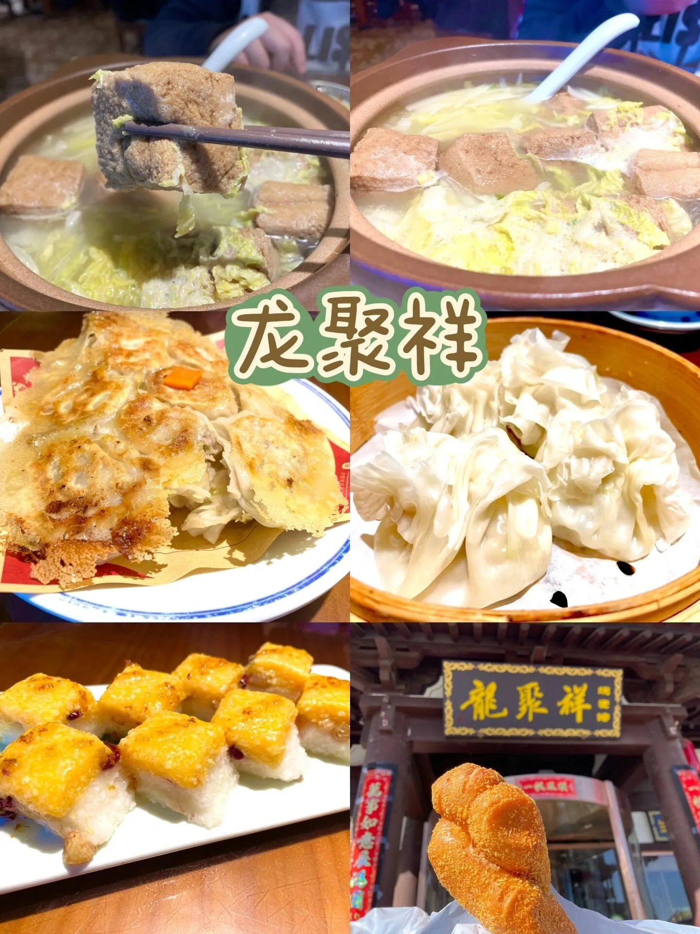 【 龙聚祥 】烧麦味道不错,但生煎烧麦不太推荐。黄米凉糕搭配桂花酱,味道绝佳!砂锅豆腐也值得一试,豆腐块大得惊人。