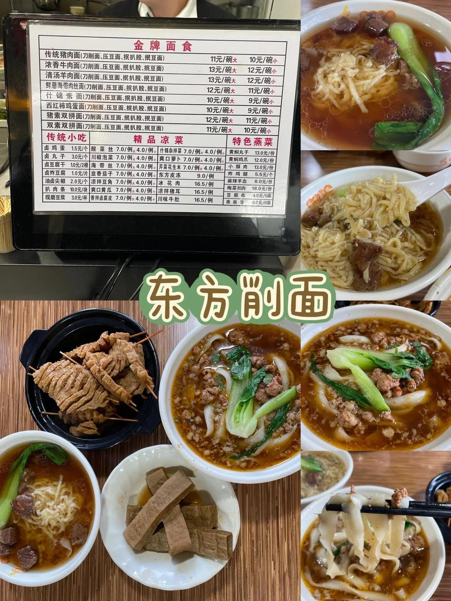 【 东方削面 】是一家连锁店,据说迎泽分店最好吃。除了刀削面,还有压豆面、抿八股、抿豆面可选。可以加鸡蛋、丸子、豆腐干、扒肉条等配料,价格实惠。