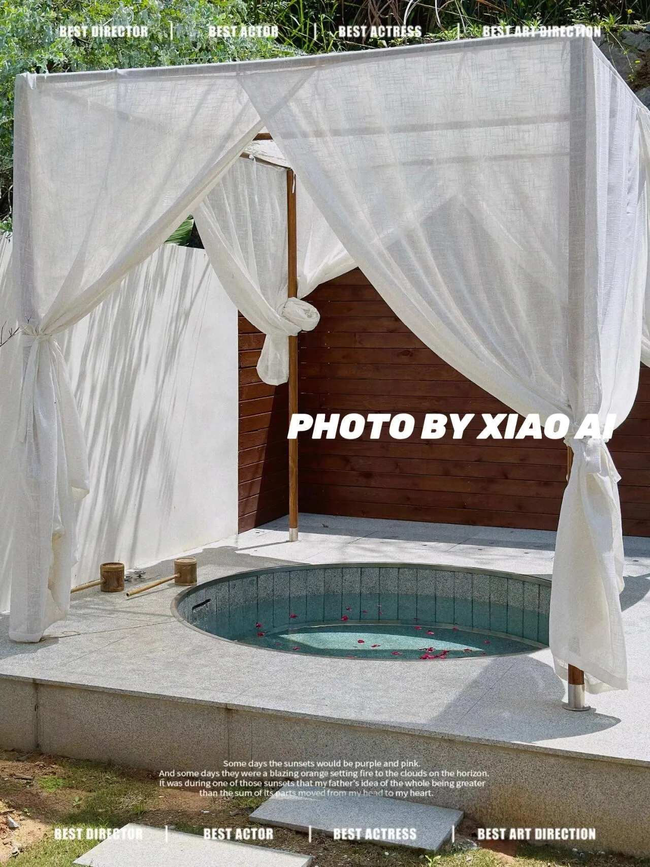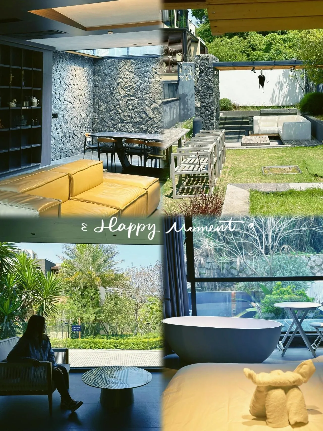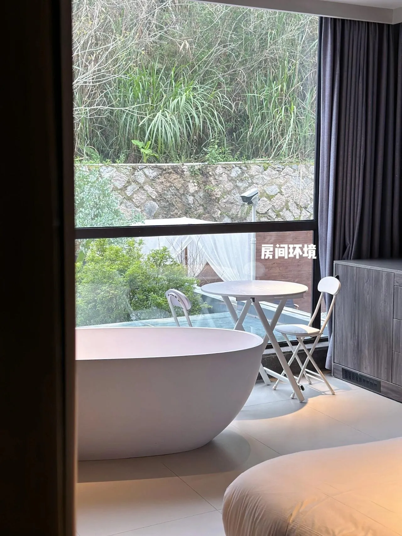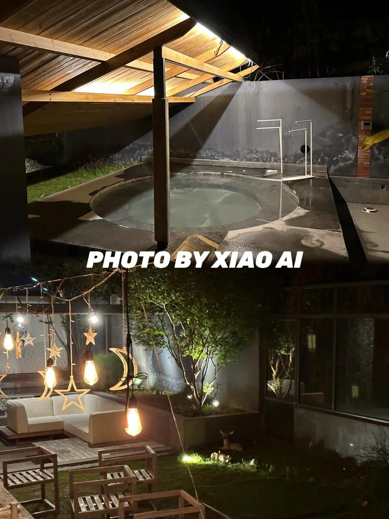 夜幕降临后,庭院的魅力更显神秘。温柔的氛围灯下,泡着温泉,点上一支香薰,整个人都沉浸在高级感中。管家告诉我们,这里的温泉水是从半月山温泉引来的,水质极佳,温泉爱好者绝对不容错过。
