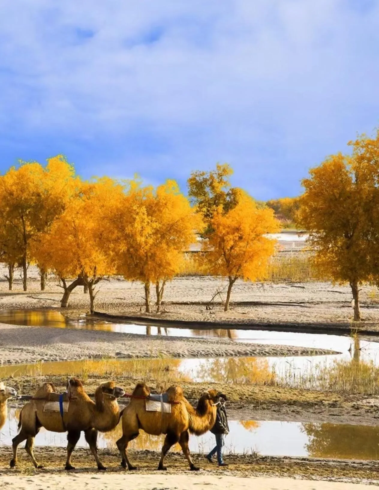 10月15日之后:可欣赏胡杨林的倒影和落叶,别有一番风味。
