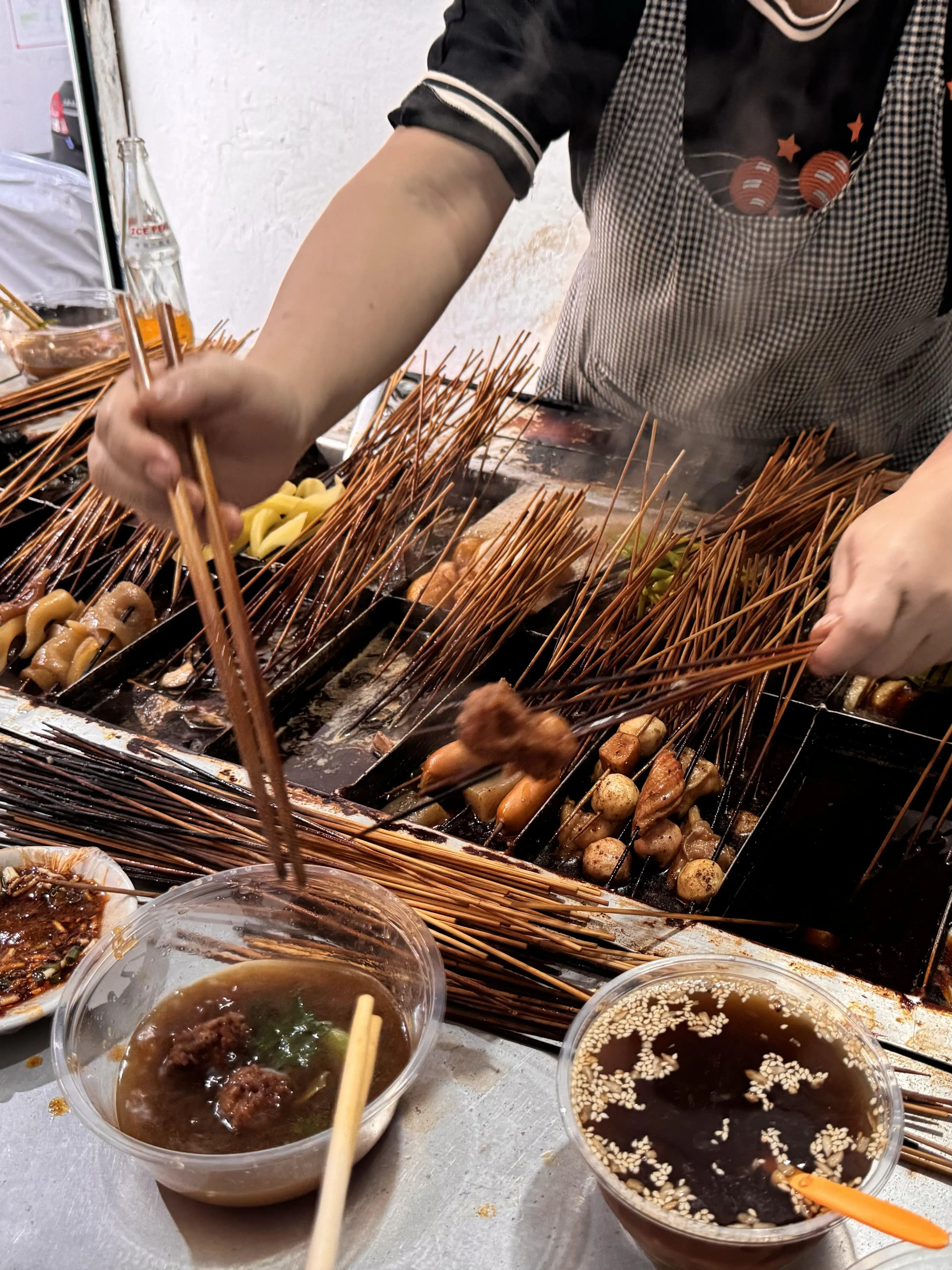 这是我在贵阳十几年来第一次吃到如此平淡又惊艳的串串。沾料一定要选辣椒面加葱花加红油,有味道又不会抢夺食材本身的味道。老板的手艺和手速都很在线,种类丰富,而且明显是现串的,吃了不会烧心也不口渴。很多本地朋友都说这是他们从小吃到大,毕业了还要专门回来吃的地方。