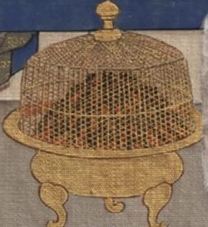 熏笼是一种放在火炉上的竹罩笼,炉中置炭、添香草生火后可用来熏衣、熏被、熏香。