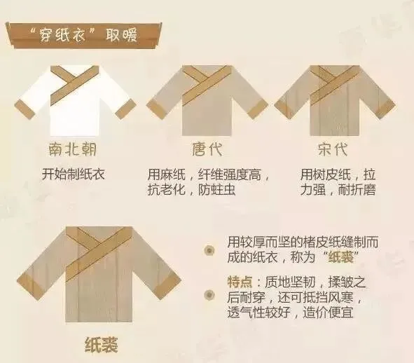 到了唐宋,随着造纸技术的发展,造纸原料也越来越容易获取,用纸制成的御寒物逐渐普及