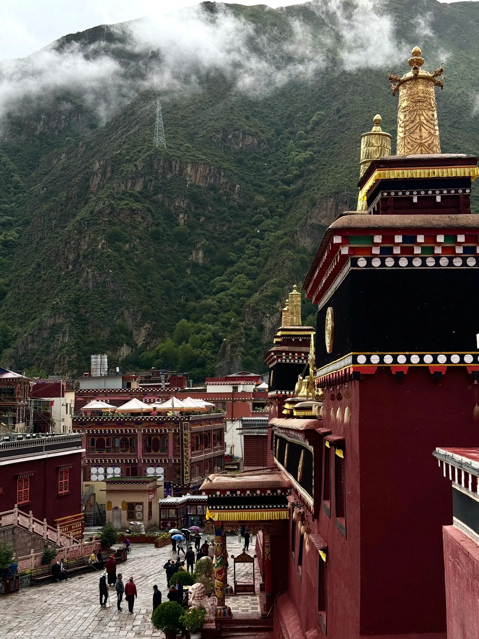 各莫寺是一座令人震撼的藏传佛教格鲁派寺院。尽管事先做了功课,但亲临其境时,仍然会被深深震撼。寺院有两项吉尼斯世界纪录:中国最大的连体佛殿建筑和最高的弥勒佛坐像。主殿外的8根非洲珍贵原木柱子,树龄超过1000年,据说每根价值数百万元。8楼的博物馆珍藏了佛陀真身舍利等众多奇珍异宝。顶楼的黄金坛城和精美的壁画佛像唐卡,金碧辉煌,令人叹为观止。