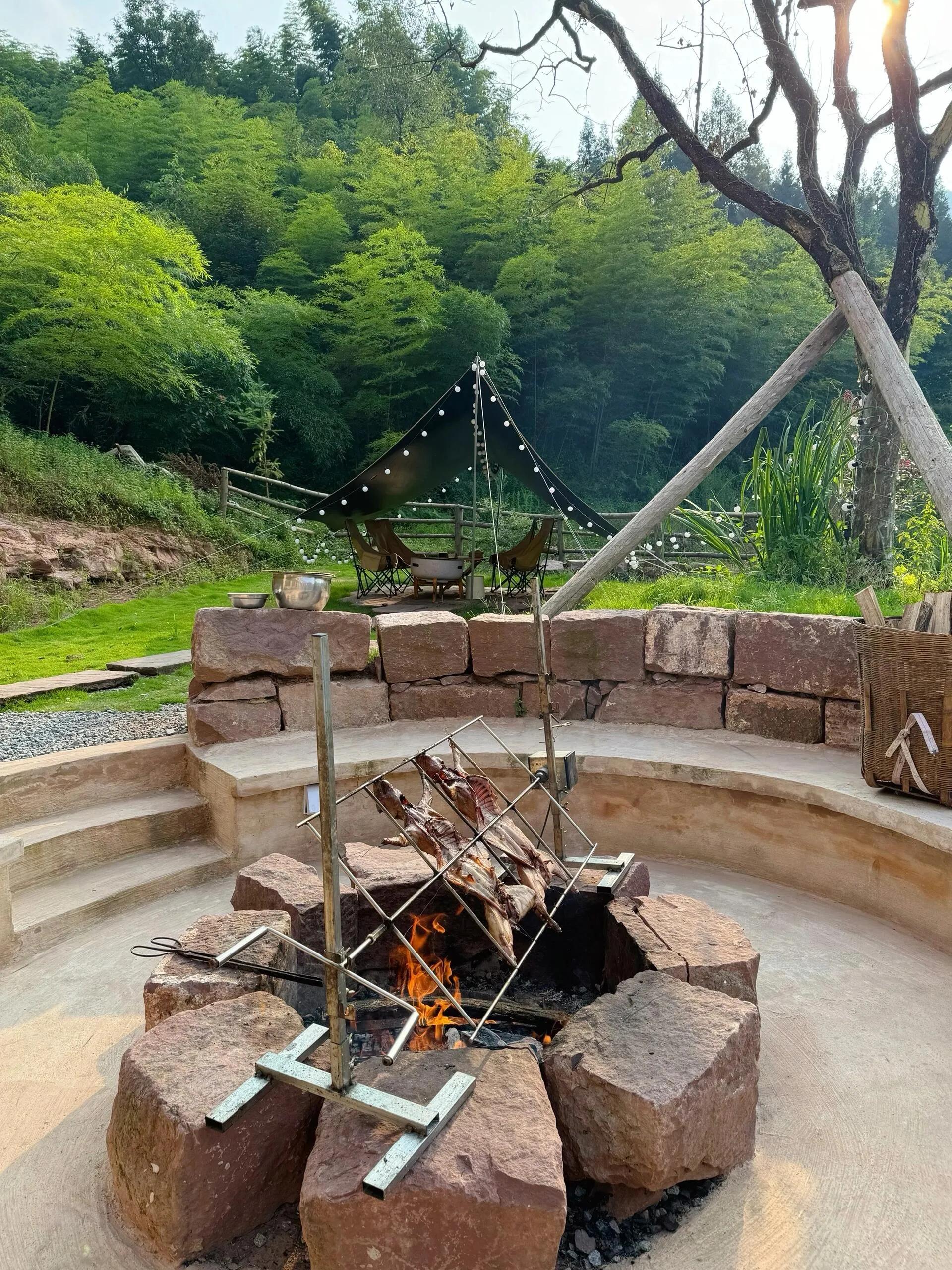 这家名为“暮云春树”的民宿位于雅安碧峰峡景区内。门口设有专门的停车场,还配备了电车充电桩,非常方便。