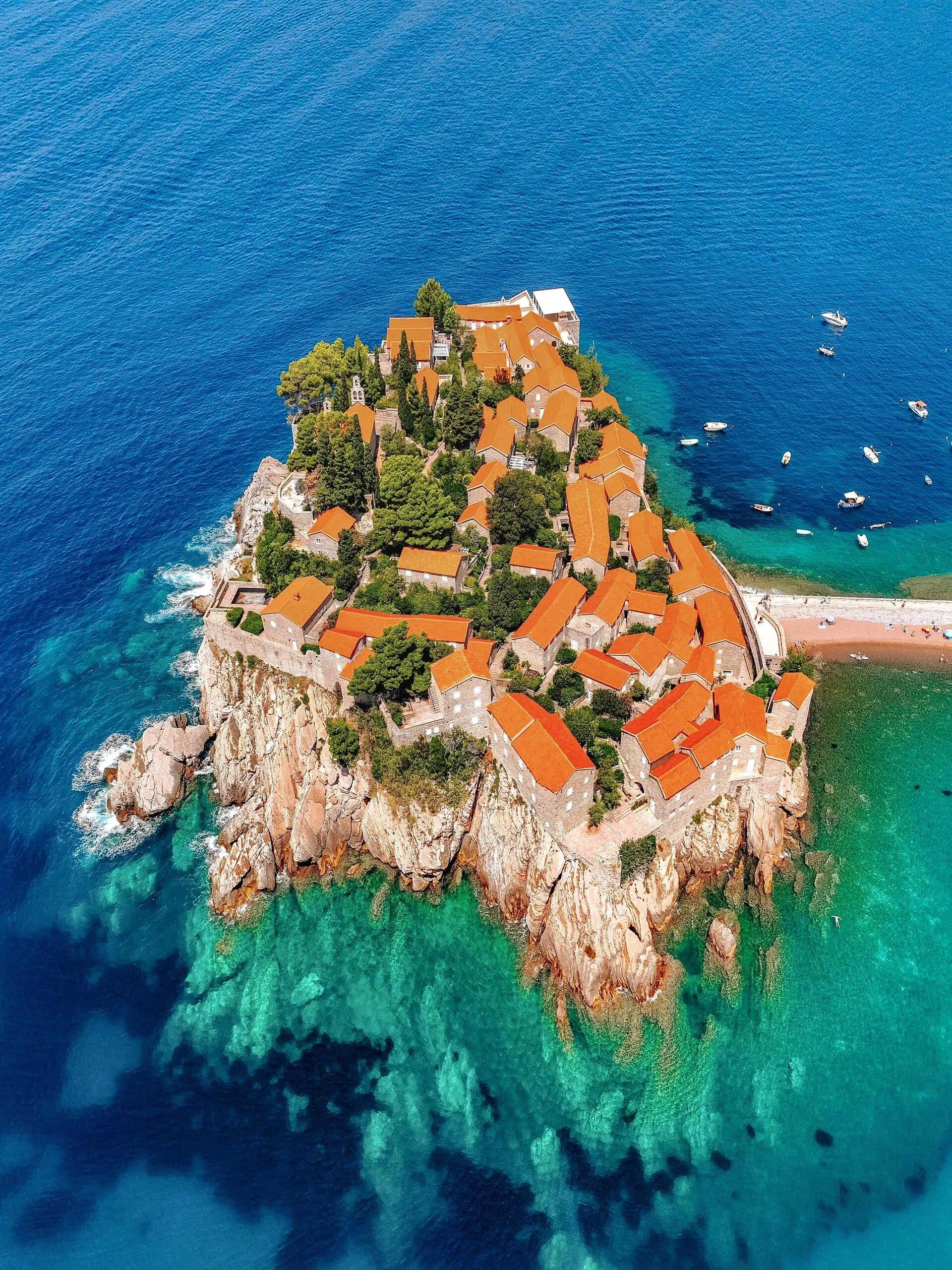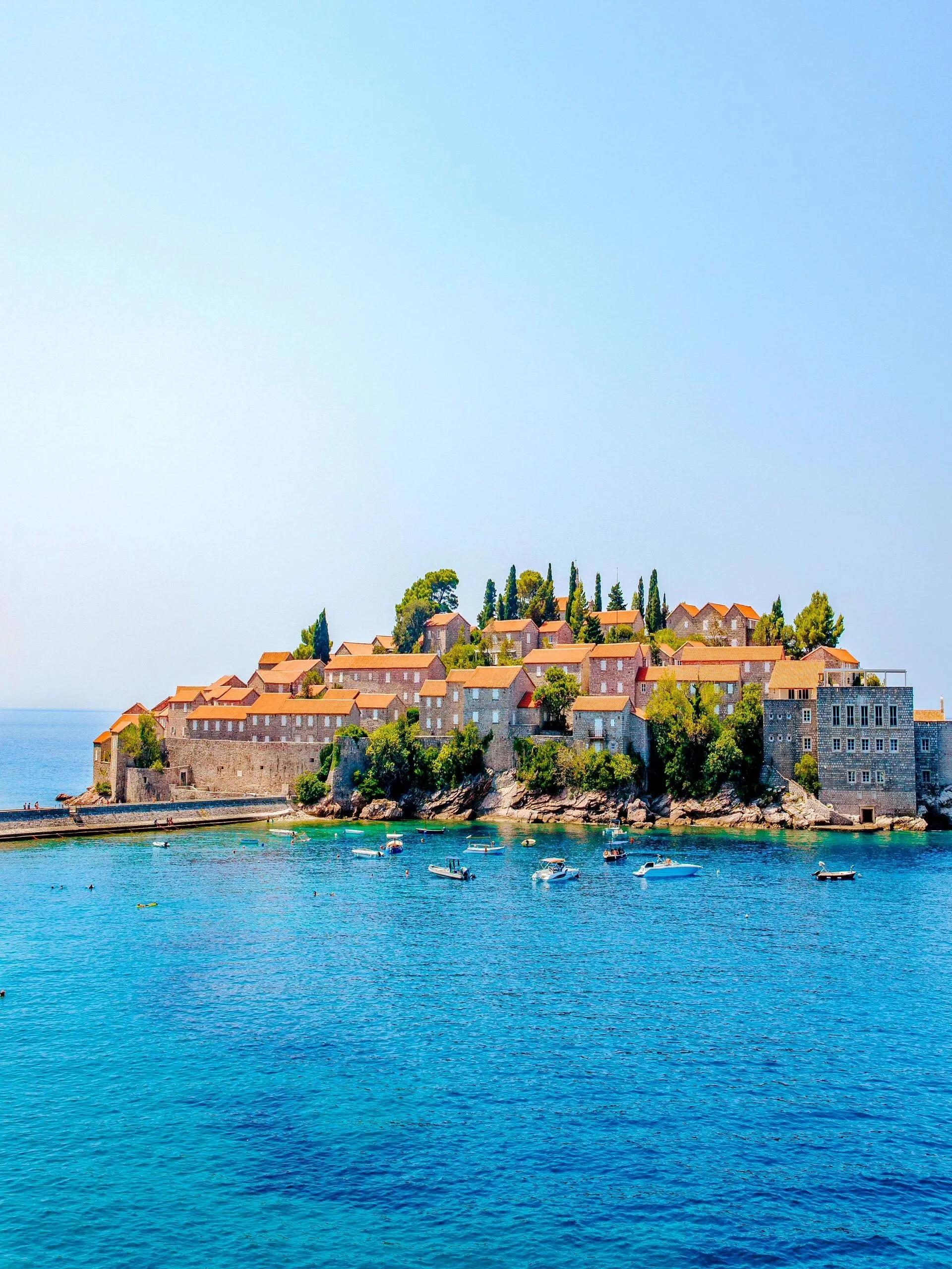 我们的第一站是圣斯特凡岛,在这里小住了一天。 这座海上小岛是黑山最著名的景点之一,也是典型的明信片风景。 整个岛屿都被安缦酒店占据,只有住客才能登岛 ,给人一种与世隔绝的感觉。当亲眼看到这美景时,真的被惊艳到了!
