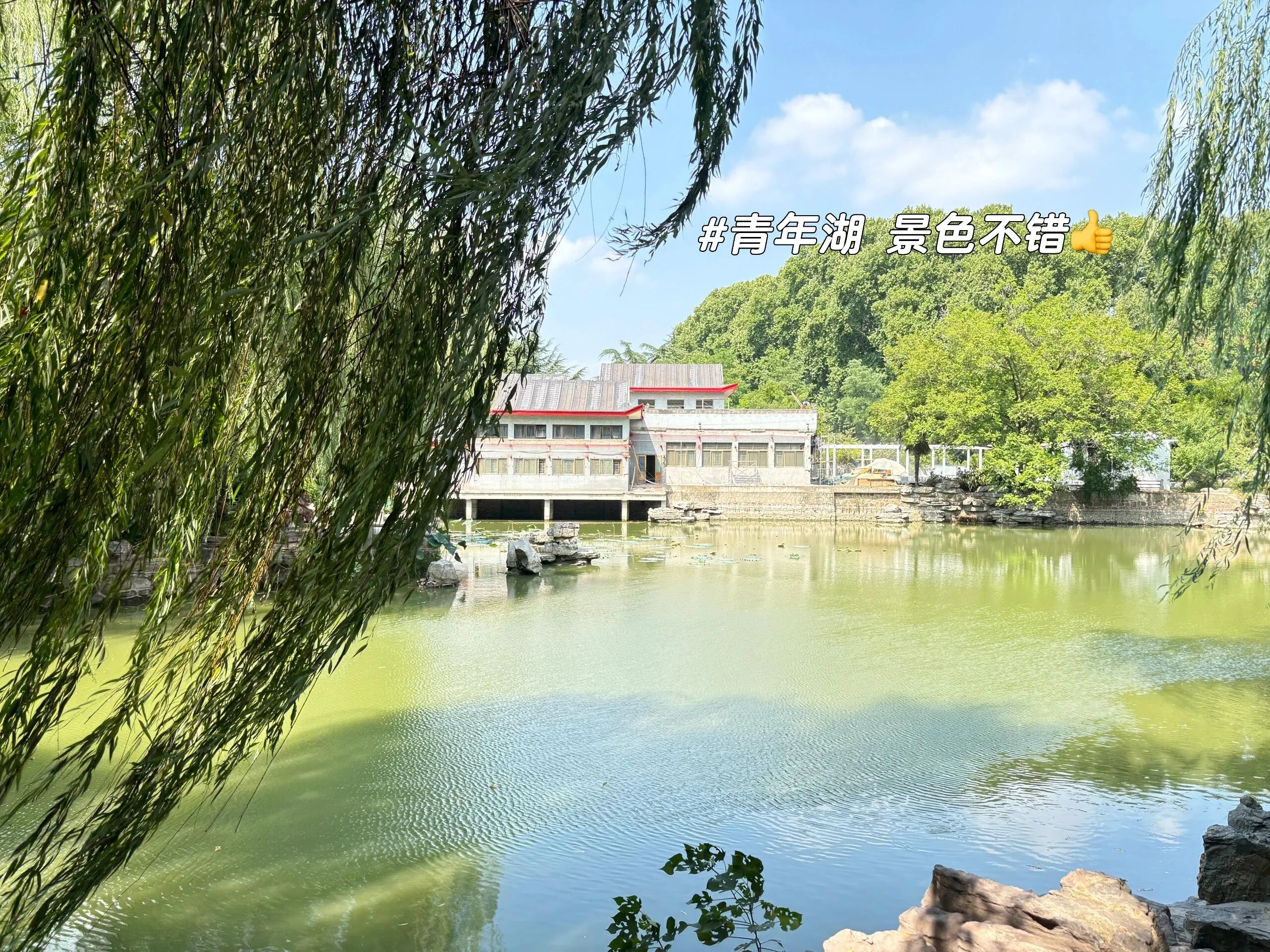 从太康路进入公园,迎面而来的是一棵树龄170岁的大槐树,以及气派的胡公祠 ,营造出浓厚的古朴氛围。园内设施丰富多样,有供游客攀爬的小假山(建议穿防滑鞋),还有青年湖可以观赏鸭子和小鱼。