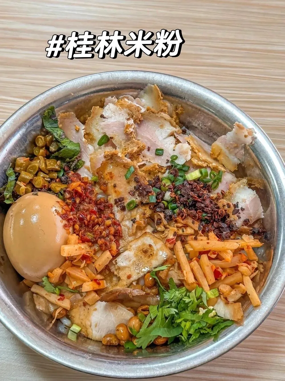 桂林米粉以其细薄柔滑的口感和特制的卤水而闻名。 搭配脆皮炸黄豆或葱花,口感层次丰富。每一口都充满幸福感,细腻的口感和香浓的卤水让人陶醉其中。
