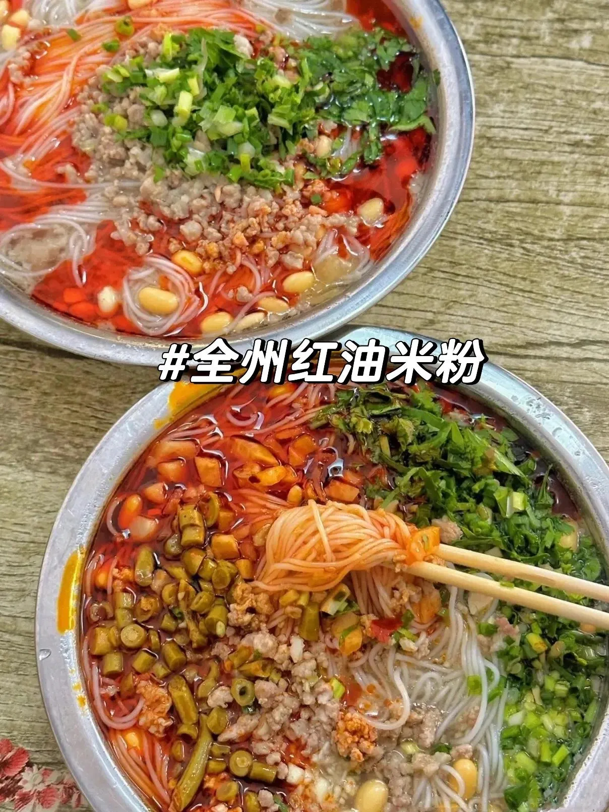 全州红油米粉以鲜红的辣椒油和香醇的米粉为特色 ,搭配黄豆、葱花等配料,香辣可口。辣中带鲜,红油香气扑鼻,让人一吃难忘。