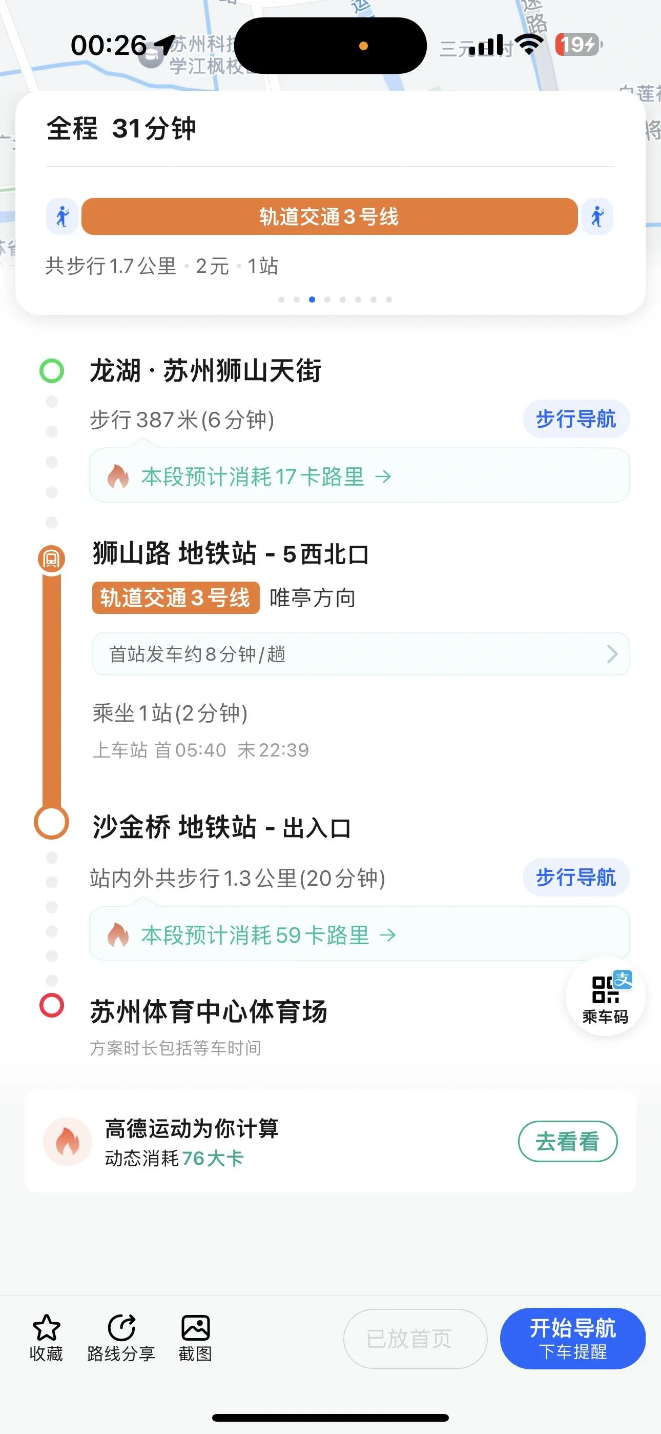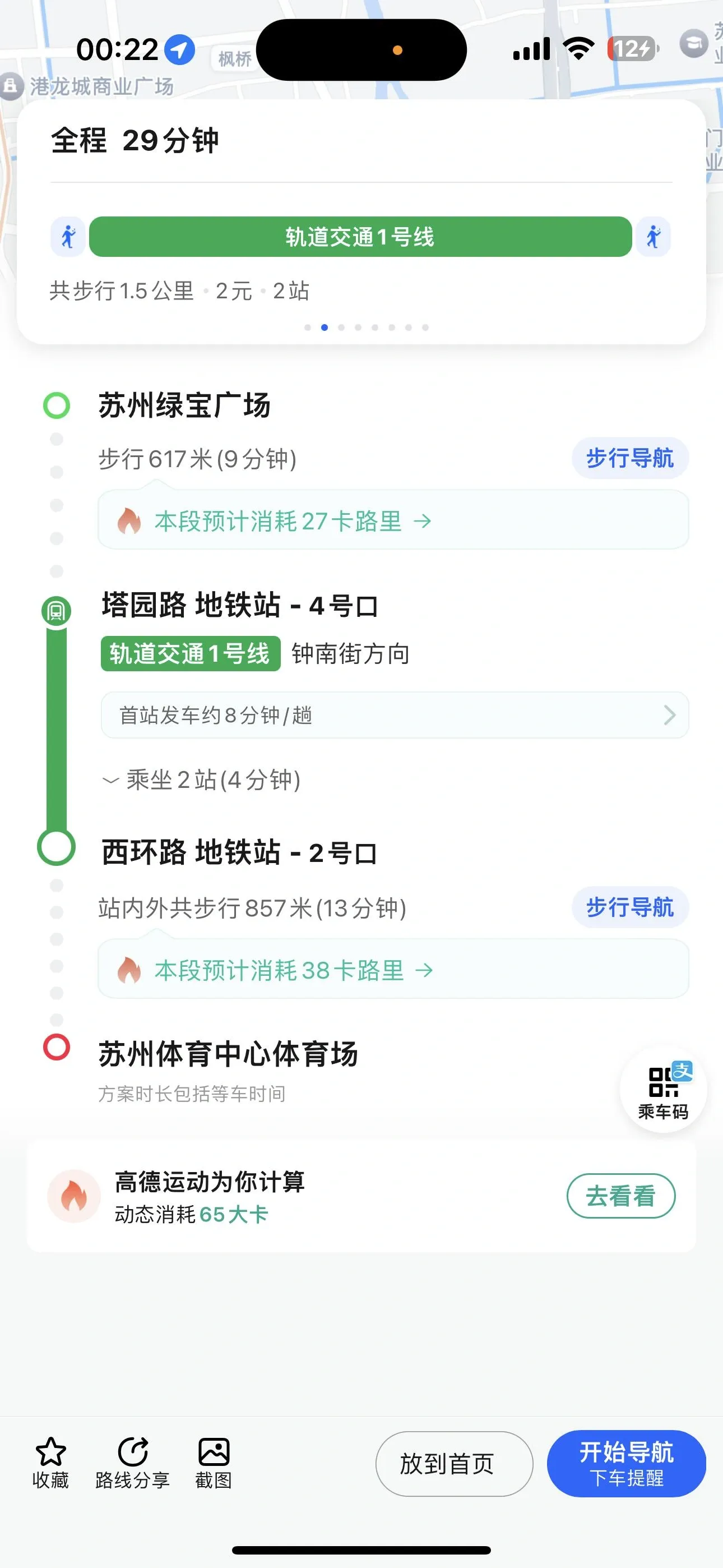 从绿宝广场到地铁站步行需要9分钟,从地铁出站口到苏州体育中心体育场则需要13分钟。不过,我发现坐公交车可能是更好的选择。根据苏州发布的推荐,公交车总路程只有5分钟,而且就停在体育场门口,比地铁舒服多了。