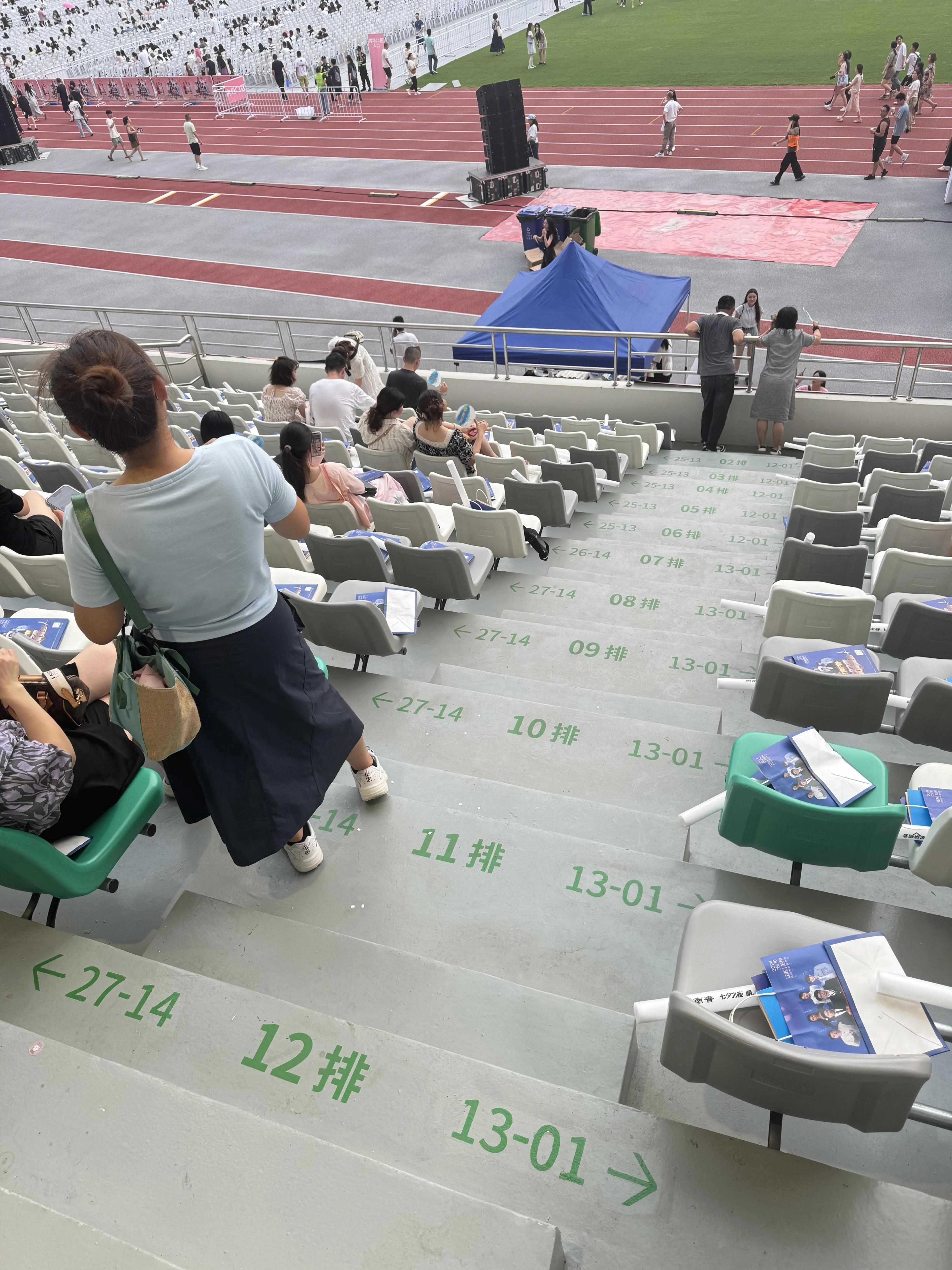 体育场周围有很多卖水的地方,同时也提供杯子和免费饮水点,非常贴心。我这次的座位在123区左侧,靠近舞台的大号座位。我朋友在对面137区,她说那里也是靠近舞台的大号座位。