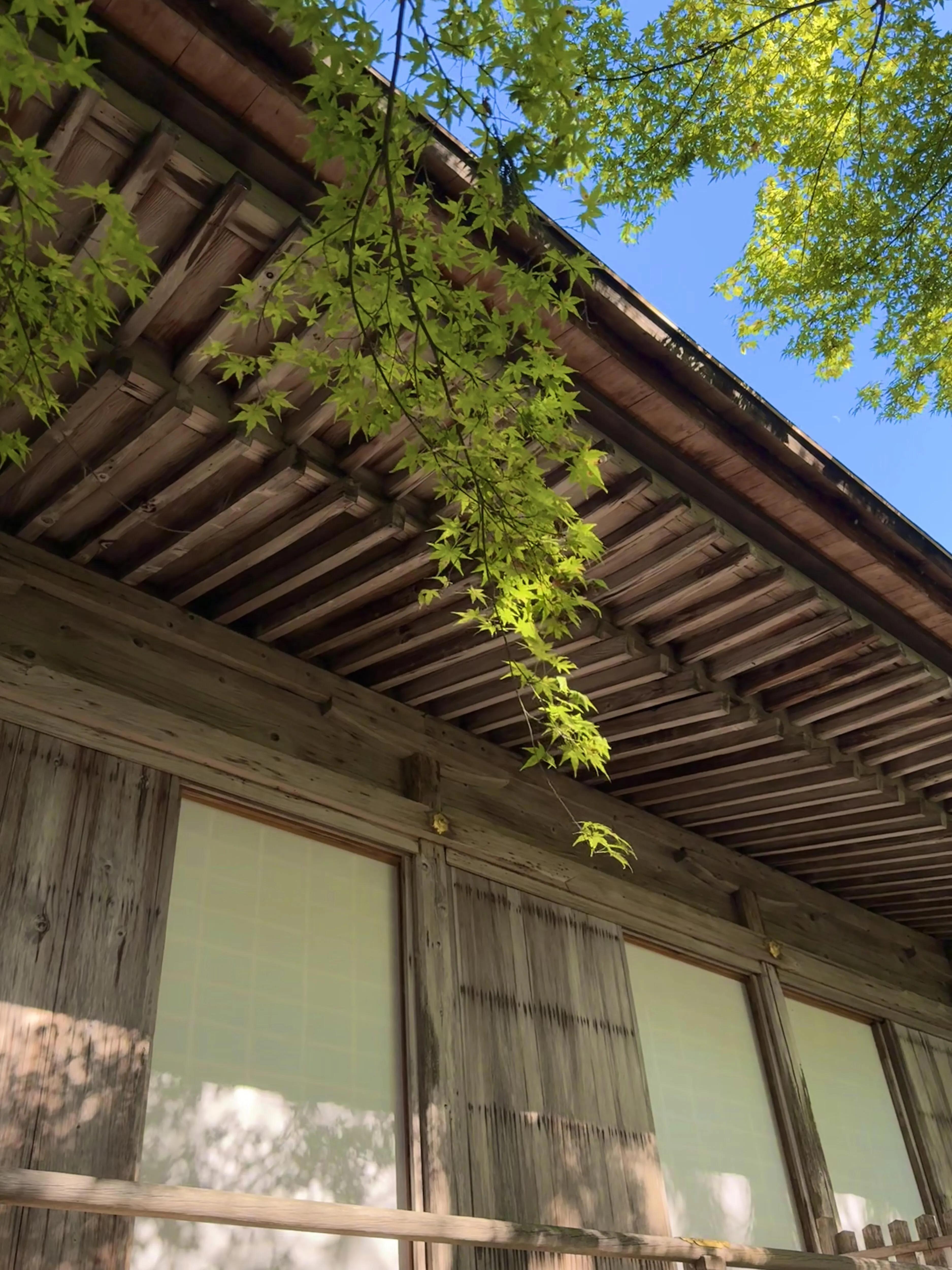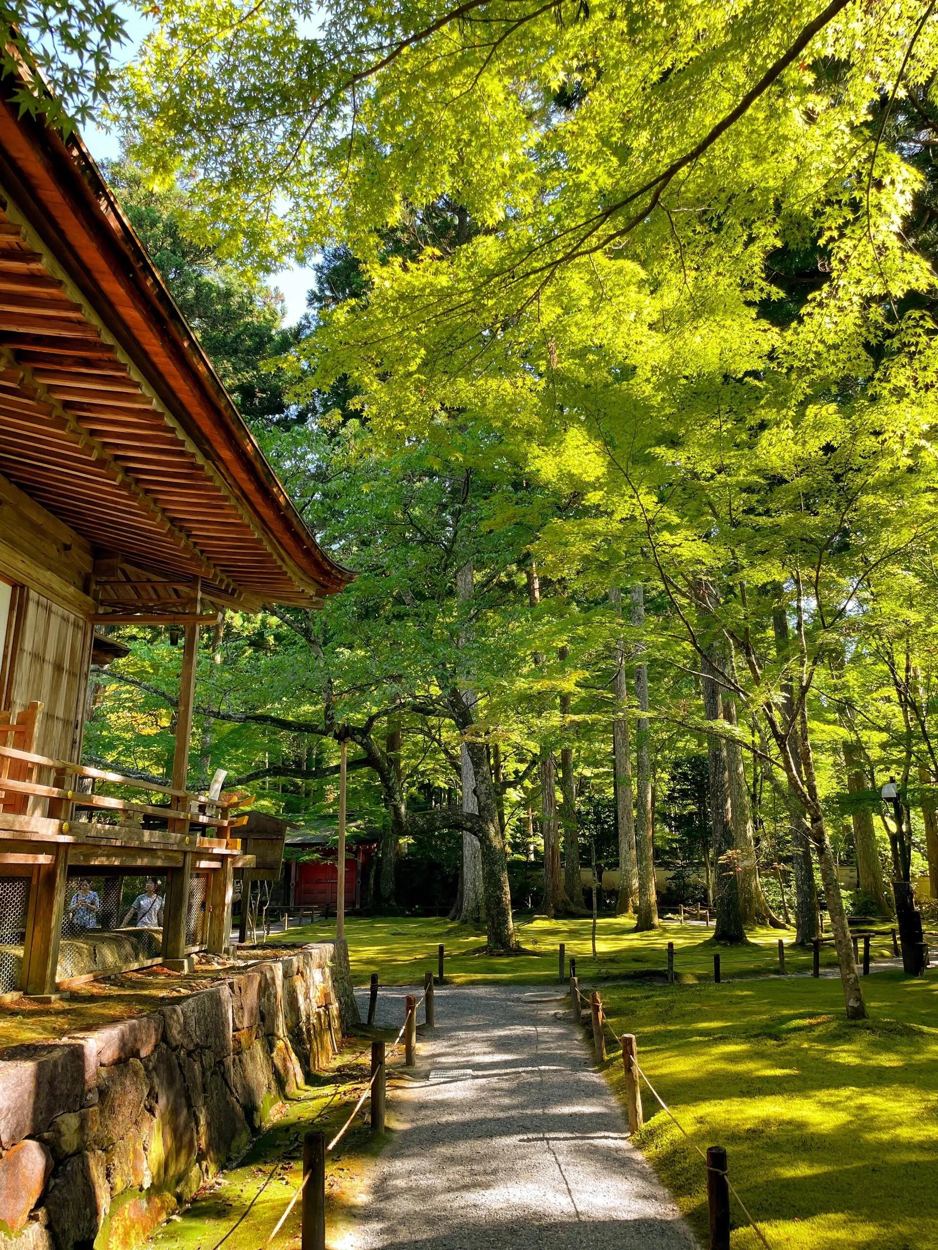 夏末初秋时节,三千院呈现出一幅绿意渐变为金黄的景象。微风徐徐,格外清爽宜人。与 其他绿瓦红砖的寺庙不同,三千院的浅木色木质建筑低调地融入自然环境中 ,营造出一种和谐的氛围。