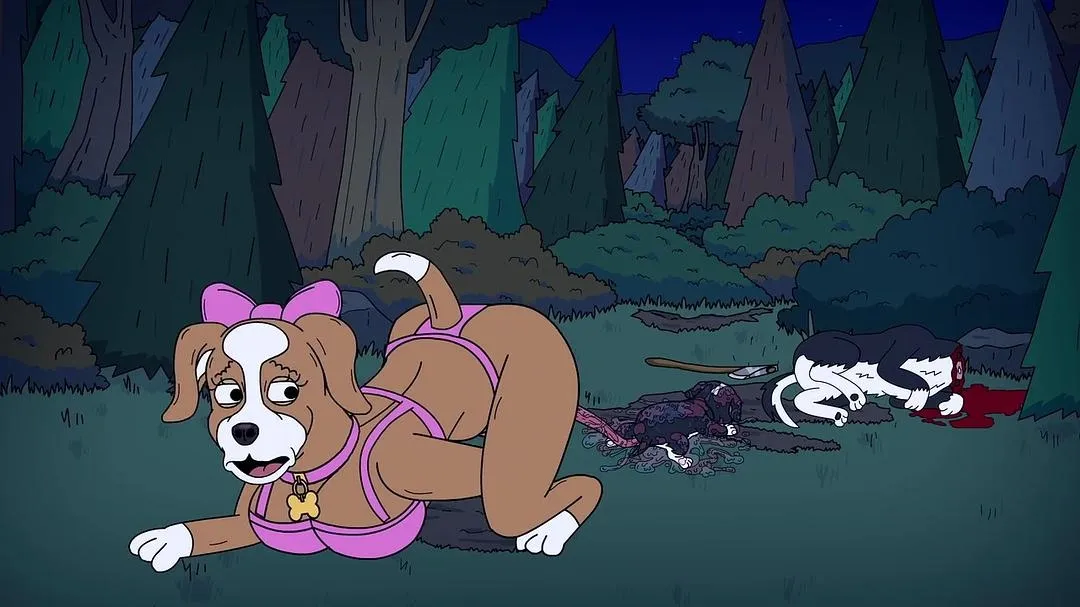 《腌黄瓜先生》讲述了一只被撒旦附身的边境牧羊犬在小镇上不断杀戮的故事。表面上看,这是一部充满血腥暴力的恐怖动画。然而,正是这种看似荒诞不经的设定,为创作者提供了无限的发挥空间。 动画巧妙地运用夸张、对比等手法 ,在恐怖与幽默之间找到了微妙的平衡。