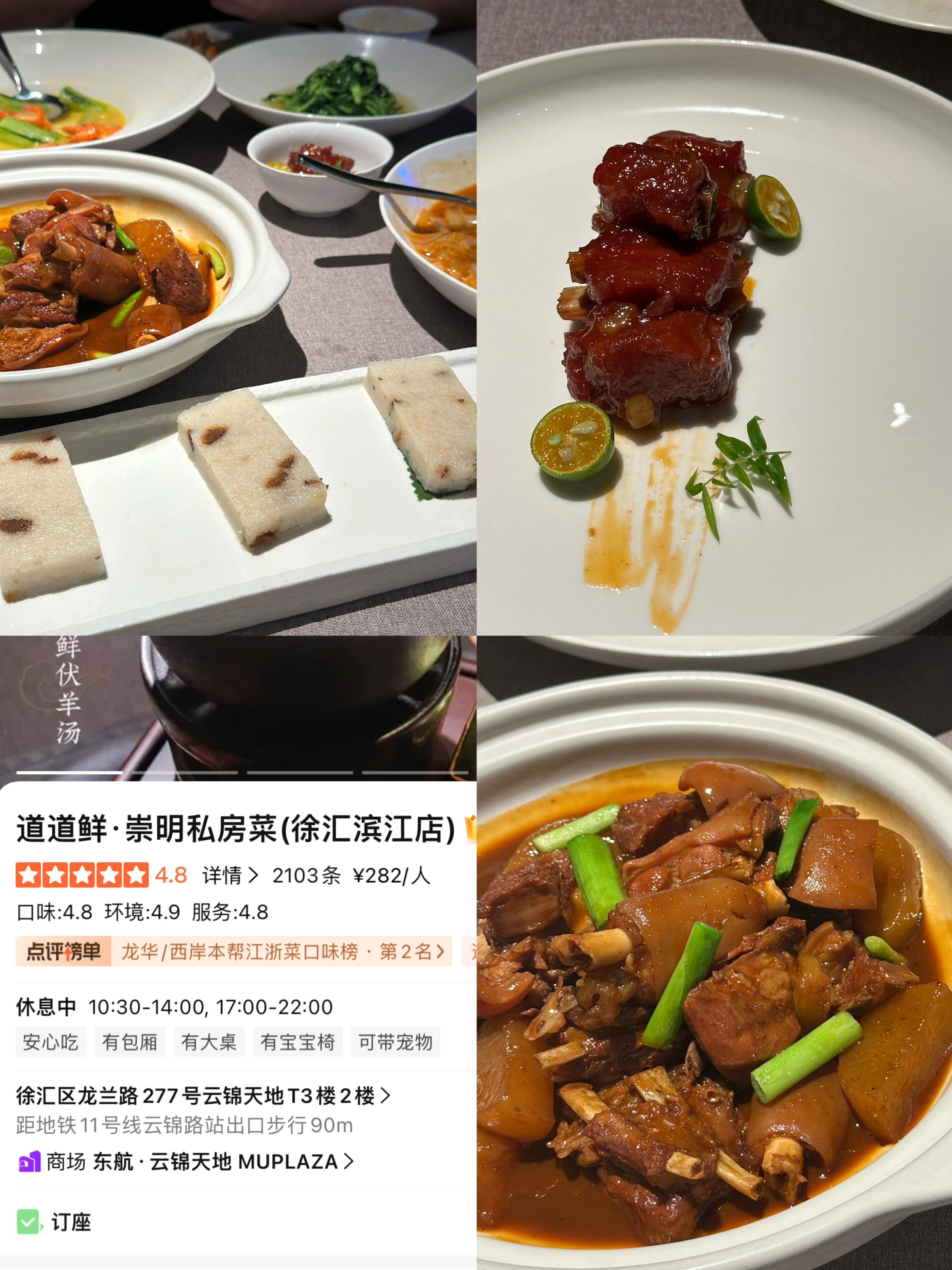 这家餐厅的菜品超乎想象的美味。其中红烧崇明白山羊砂锅是必点之选。环境和菜品都很适合商务宴请。